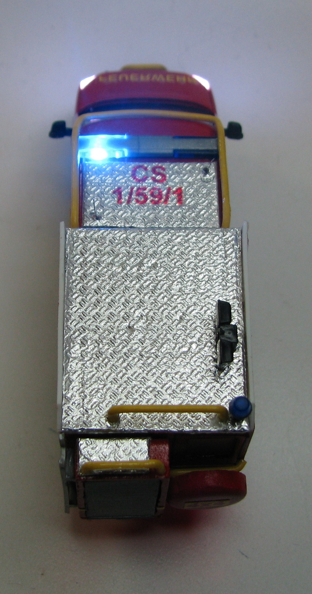 Ich werde es mir für die nächsten Bilder beherzigen, aber ich will auch gar nicht unbedingt das immer alle Lichter an zu sehen sind. Und da verschiedene Modelle im Moment der Einsatzfahrt gebaut sind, wäre ein leuchtender und ausgefahrener Lichtmast bei einigen Brückendurch- und Waldwegfahrten eher hinderlich. :lol:
