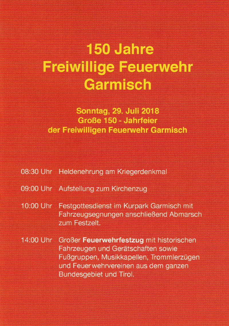Hier nun das offizielle Programm zur 150jahr-Feier der FF Garmisch:
