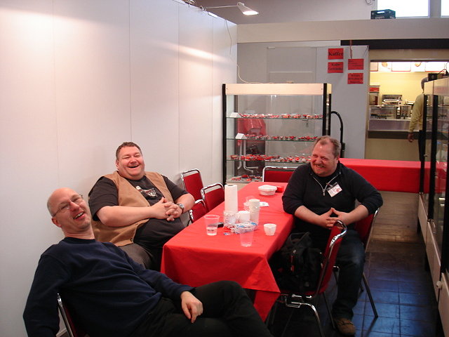 Lustig ist das "Ausstellerleben" - Ein Teil der Besatzung von Stand der IG Blaulichtmodelle