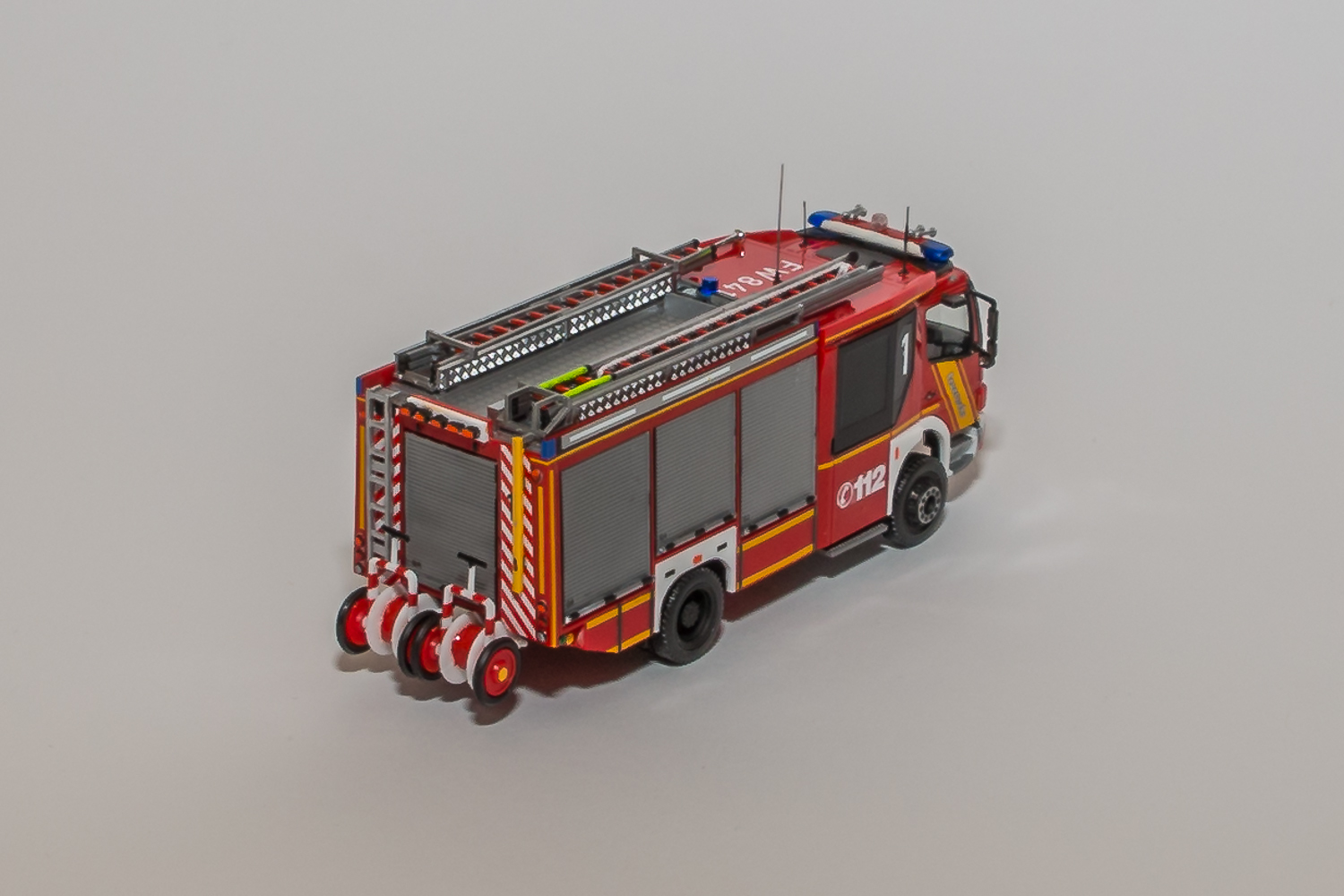 mir gefällt das Design deiner Modelle sehr gut. Die Beklebung bleibt in einem sinnvollen Rahmen, schick aber nicht überladen. Hier schießen einige Feuerwehren meiner Meinung nach in letzter Zeit etwas über das Ziel hinaus. Wenn das ganze Fahrzeug nur noch mit Streifen zugepflastert wird, dann wird der Gesamteindruck zu unruhig. Passendes Beispiel wäre das aktuelle Herpa-Modell des ELW der Feuerwehr Rhede.