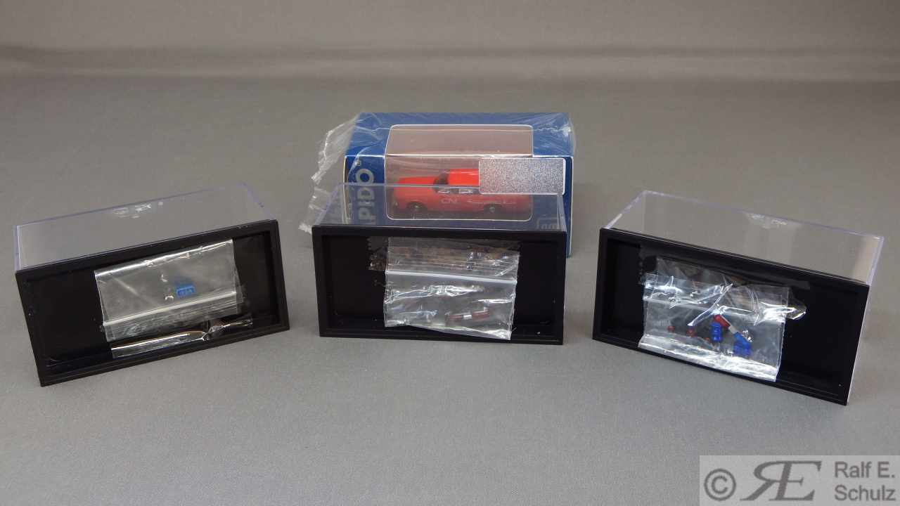 Wie zu erkennen, wurde manchen Modellen Tütchen mit diversen Zurüstteilen angeheftet, wobei sich der Inhalt bei den jeweiligen Modellvarianten stark unterscheidet (auch dazu nachher mehr).