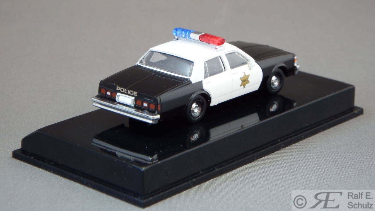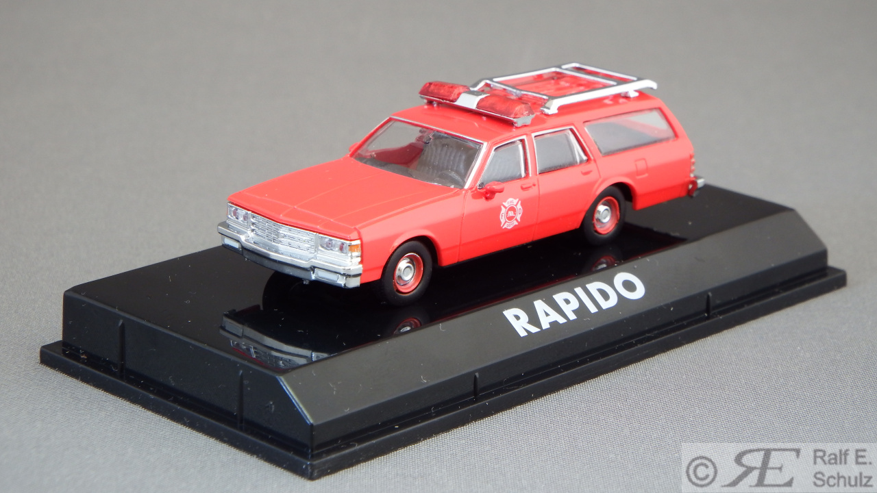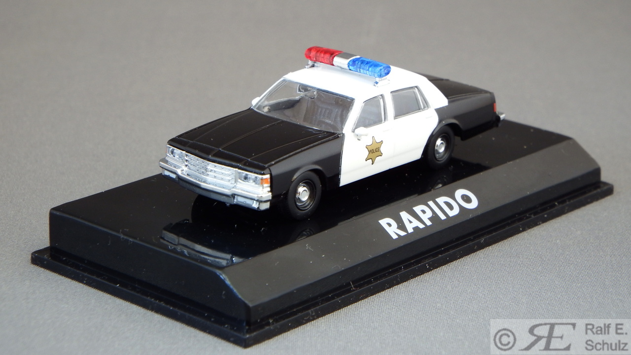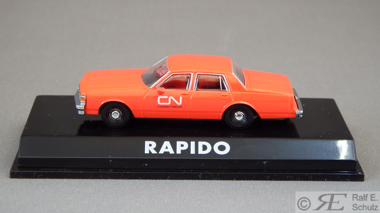 in 2021 wurden von dem kanadischen Modellbahn Hersteller Rapido Trains Inc. das 1:87 Modell des Chevrolet Caprice Classic bzw. Impala aus den frühen 1980er Jahren in diversen Varianten angekündigt (zudem sowohl Sedan (Limousine) als auch Station Wagon). 2022 war es nun soweit, es wurde gleich ein ganzer Schwung von insgesamt 14 Modellen rausgebracht, aufgeteilt in zivile Caprice und Impalas als Behörden- und Servicefahrzeuge. https://rapidotrains.com/ho-scale/vehic ... mpala.html
