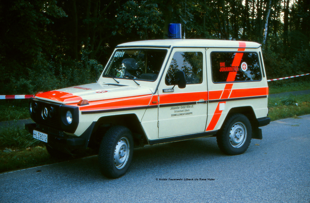 Ein weiteres nicht alltägliches Fahrzeug war dies hier. Ein Mercedes Benz GD mit kurzem Radstand. Zugeteilt der Johanniter-Unfall-Hilfe Lübeck, die das Fahrzeug als ELW einsetzte. Später lief das Fahrzeug noch bei der BF als Dienstwagen. Weitere Informationen liegen nicht vor.