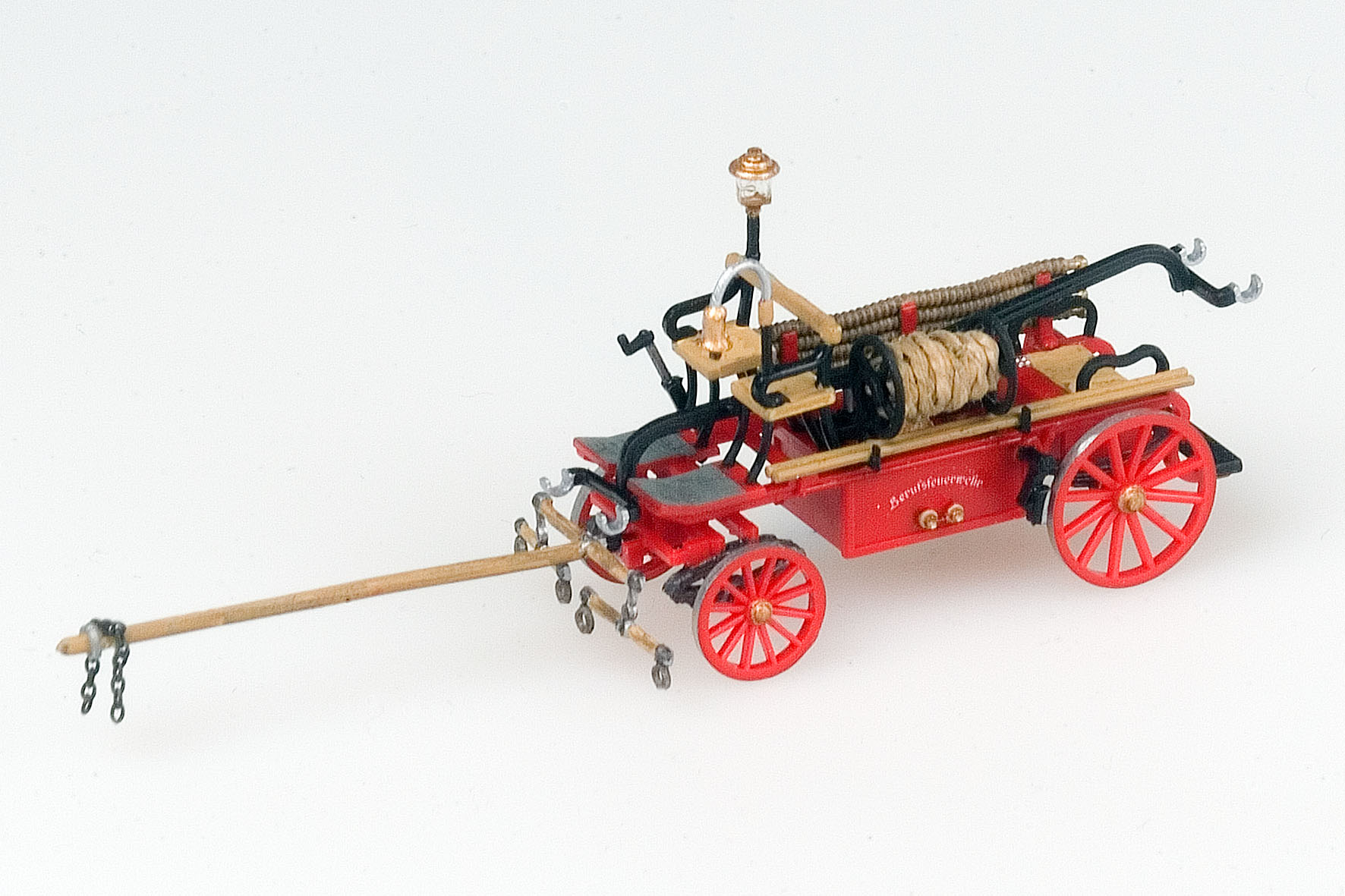 Die Mannschaft der "Hauptwache" der Feuerwehr Nordstadt ist mit der nagelneuen Handdruckspritze angetreten, um dem Herrn Bürgermeister und seiner Frau Gemahlin Rapport zu erstatten. Die Honoratioren nehmen die Meldung huldvoll entgegen - wobei das Stadtoberhaupt die Technik und die hochverehrte Frau Bürgermeister wohl eher die mutigen Männer der noch jungen Berufsfeuerwehr bewundert...