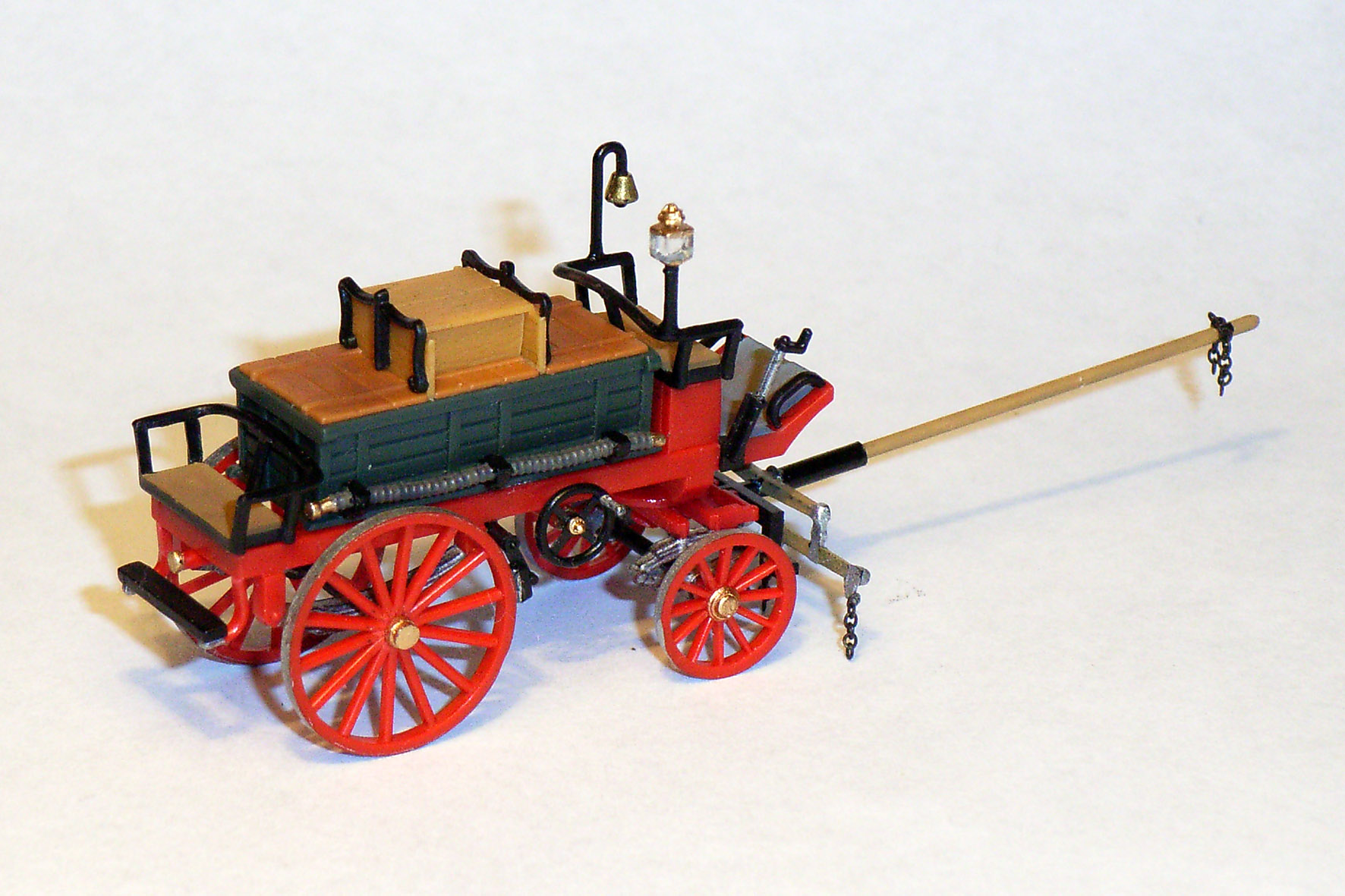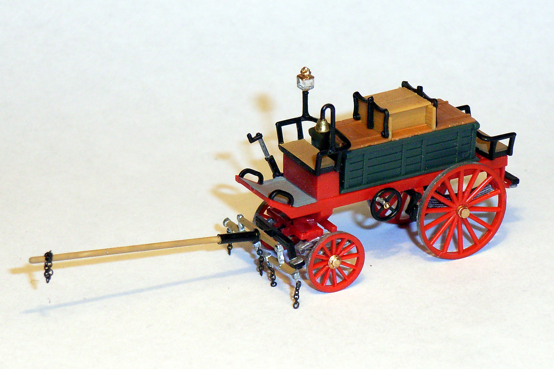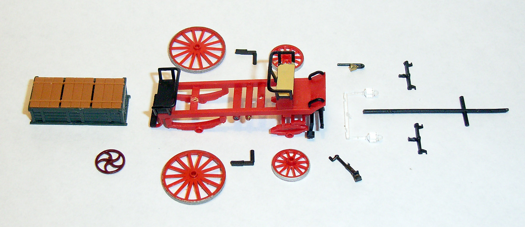 Aus dem Chassis vom Preiser-Wasserwagen (Nr. 30426) - versehen mit den nächstkleineren Kutschenrädern -, einer Pritsche vom Preiser-Kohlenwagen (Nr. 30429) und einer noch unbekannten Anzahl