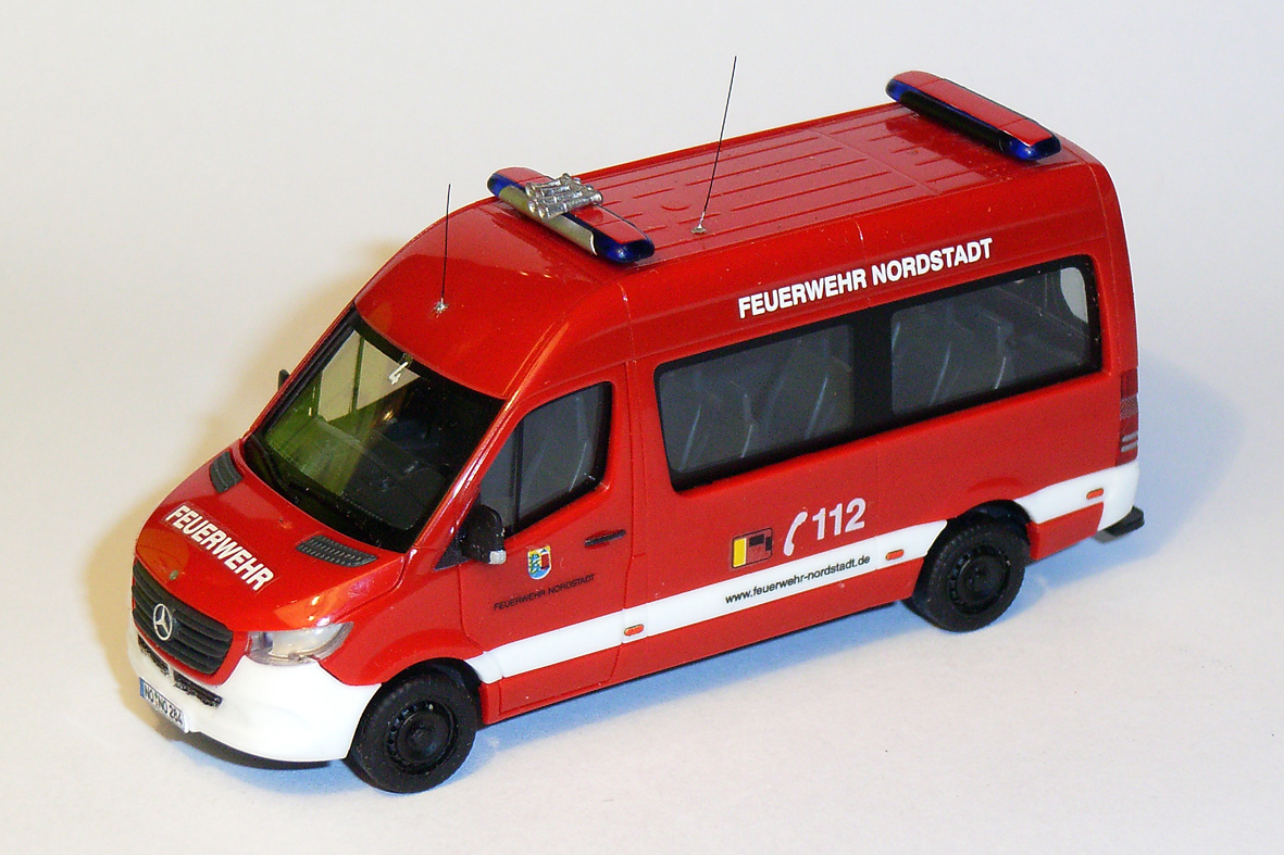 Auch die Feuerwehr Nordstadt hat sich einen der brandneuen Sprinter Tourer (wie Daimler den rundum verglasten Bus nennt) geleistet. Leider hat Herpa uns Modellbauern das Leben unnötig schwer gemacht indem man die hintere Stoßstange beim 2018er Sprinter erstmals in die Karosserieform integriert hat.