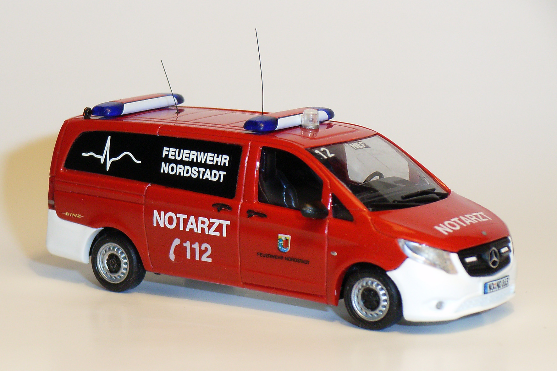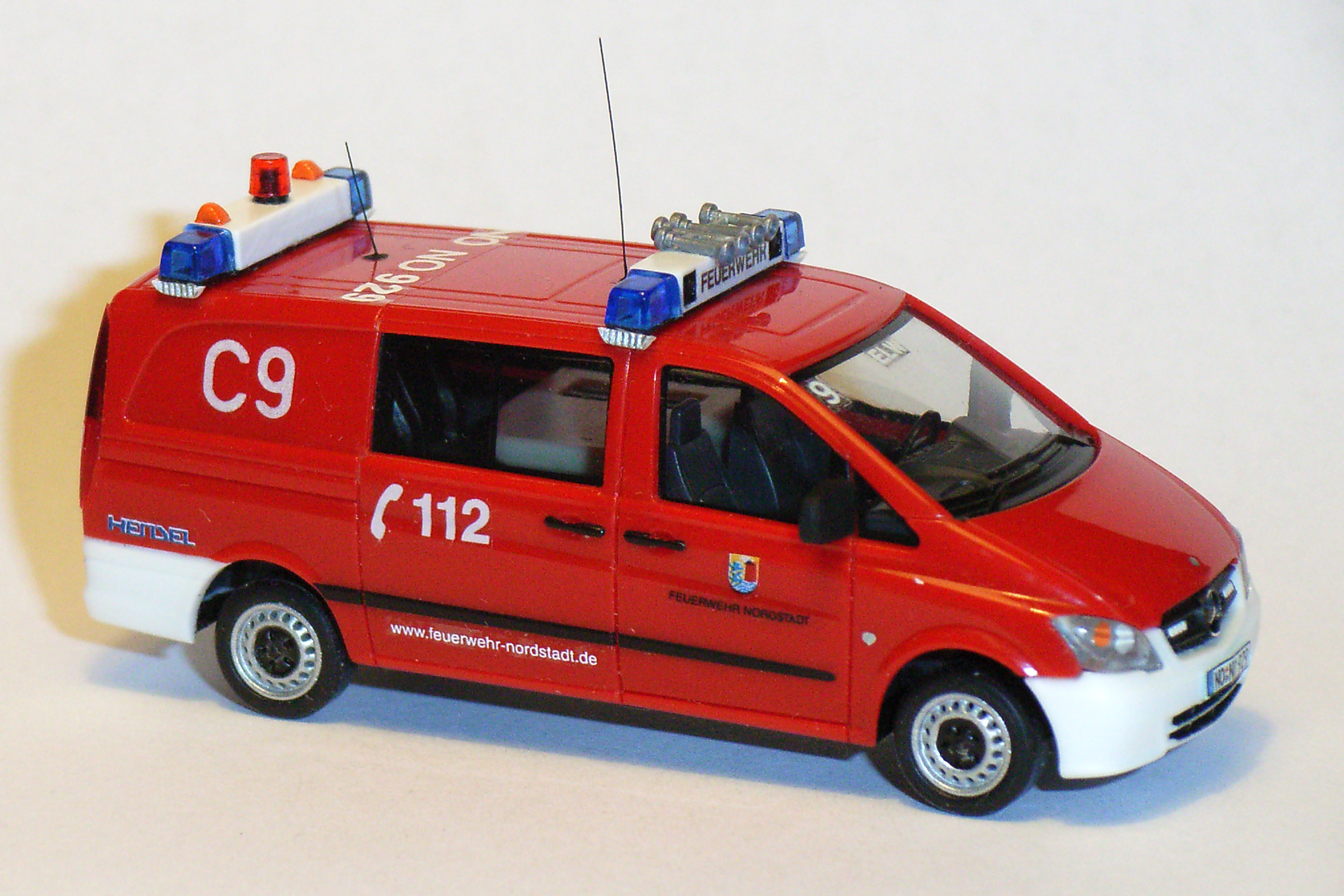 Wie es für die Autos der C-Dienste in Nordstadt üblich ist, wurde der Vito u.a. noch mit Umfeldleuchten, einer roten RKL, zwei Balkenblaulichtern und einer üppigen Beschriftung versehen. Und jetzt schreib' ich 's doch: "Habe fertig!" :mrgreen: