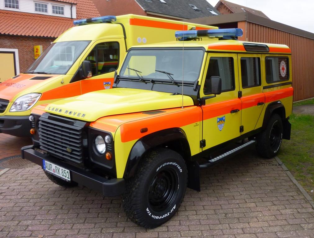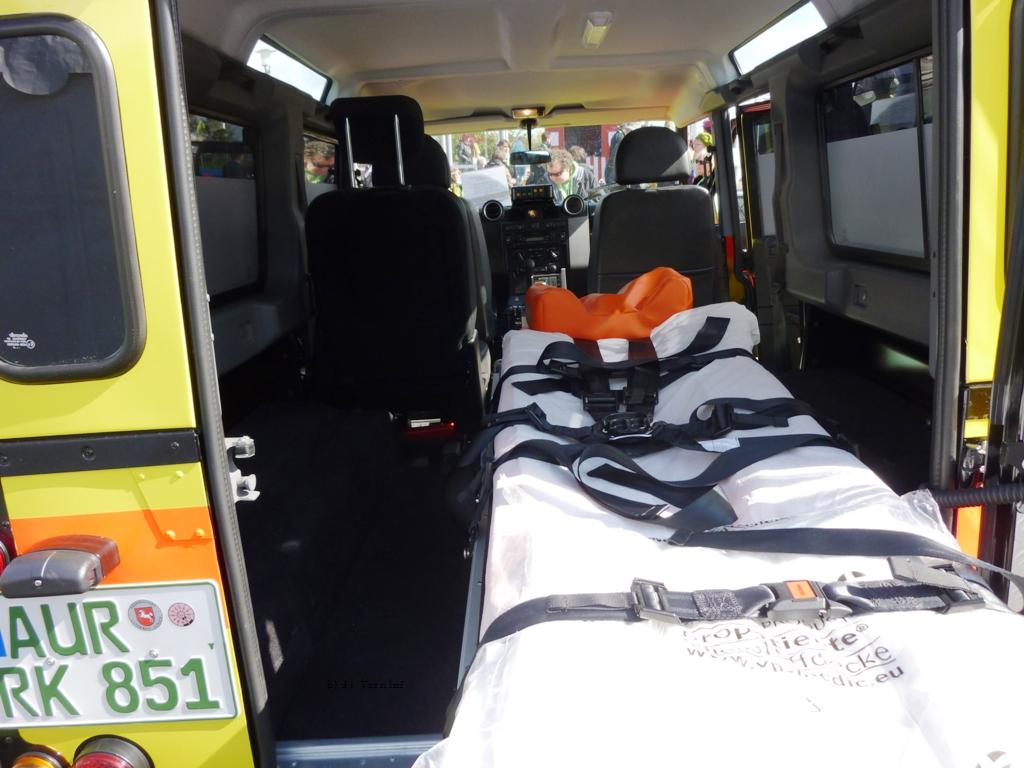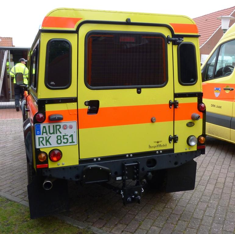 Der Neue, ist ein Land Rover Defender, der seit etwa 2 Wochen auf der Insel ist. Der äußerst "spartanische" Ausbau stammt lt. Aufkleber von Hospimobil. Das Fahrzeug ist ursprünglich schwarz gewesen, und wurde passend zum vorhandenen RTW in gelb mit roten Streifen beklebt.