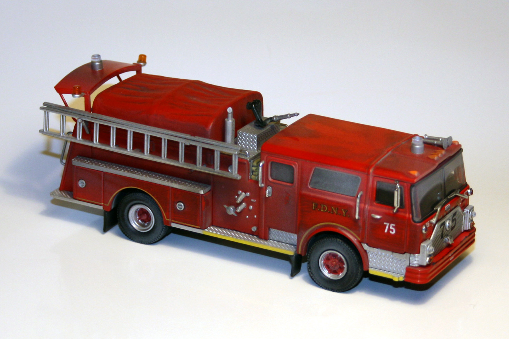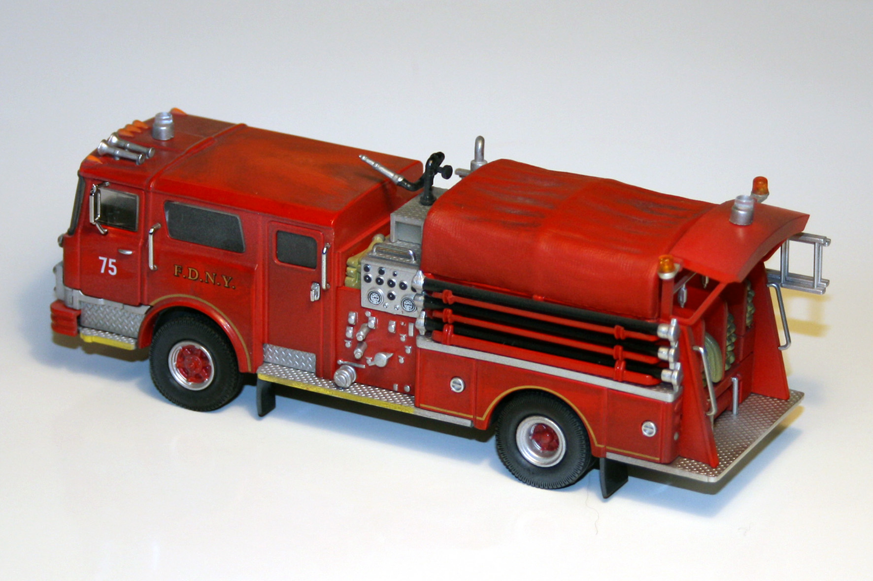 Code 3 hat geschrieben:This model is the first in a series of Valiant Service Models that depict the hard working Rigs of a bygone Era. In the 1970s many of the Companys in the FDNY were tasked to constant calls and worked long hours battling many blazes in the War Years of civil unrest. This model is an authentic replica of the FDNY Engine 75 from the Bronx of that Era...