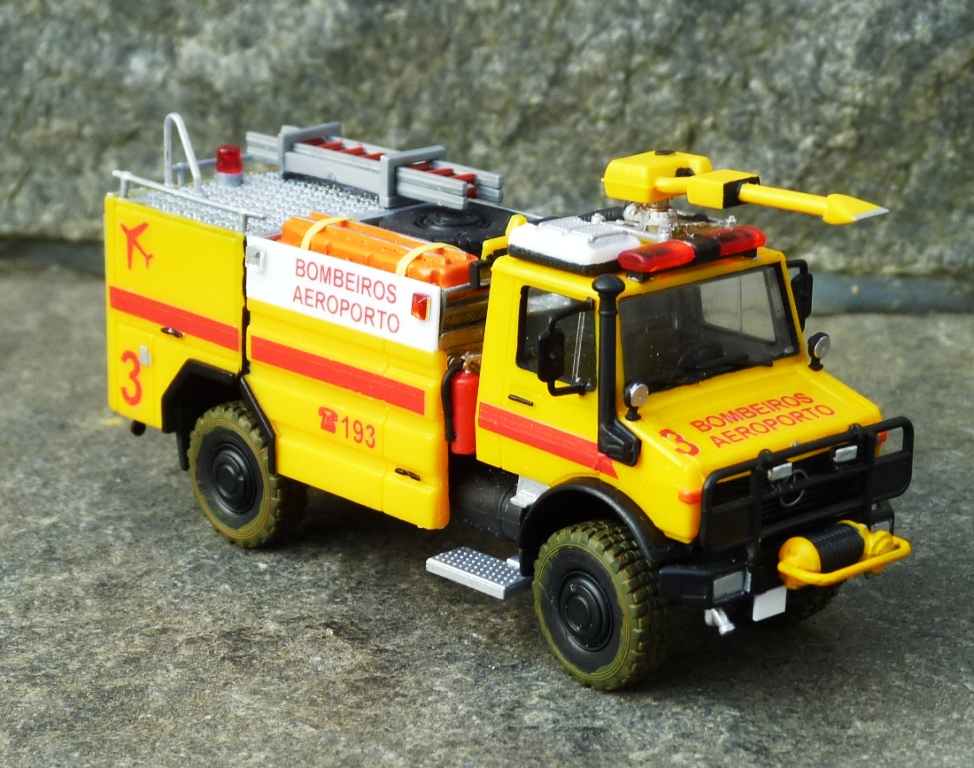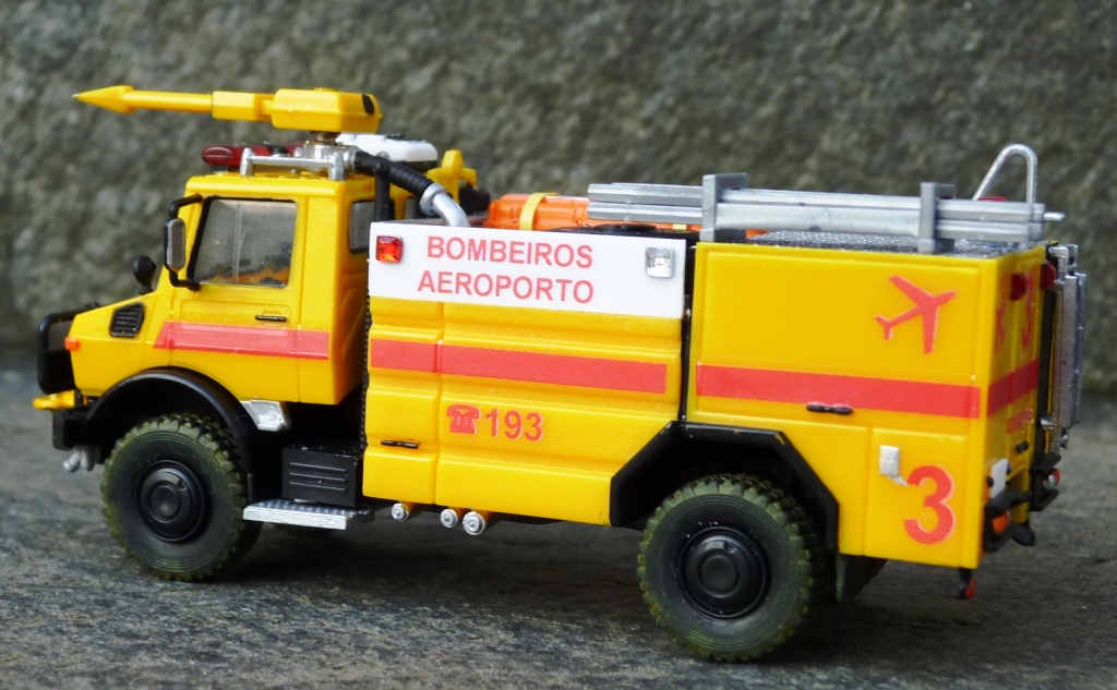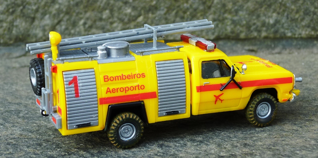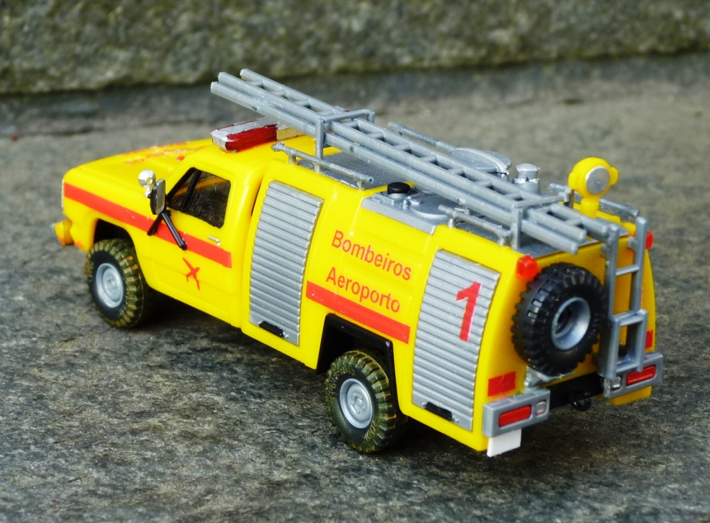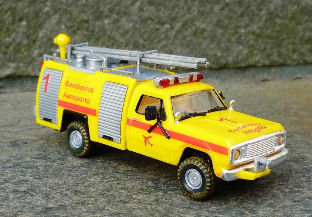 Es ist daher nicht verwunderlich, dass die dort stationierten Fahrzeuge nicht dem brasilianischen Standard entsprechen, sondern aufgrund der Finanzierung durch den privaten Betreiber etwas dem dortigen Standard angepasst sind. Die gelbe Farbgebung mit roter Bauchbinde ist jedoch für Flugfeldlöschfahrzeuge in Brasilien üblich.