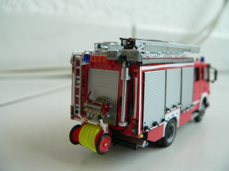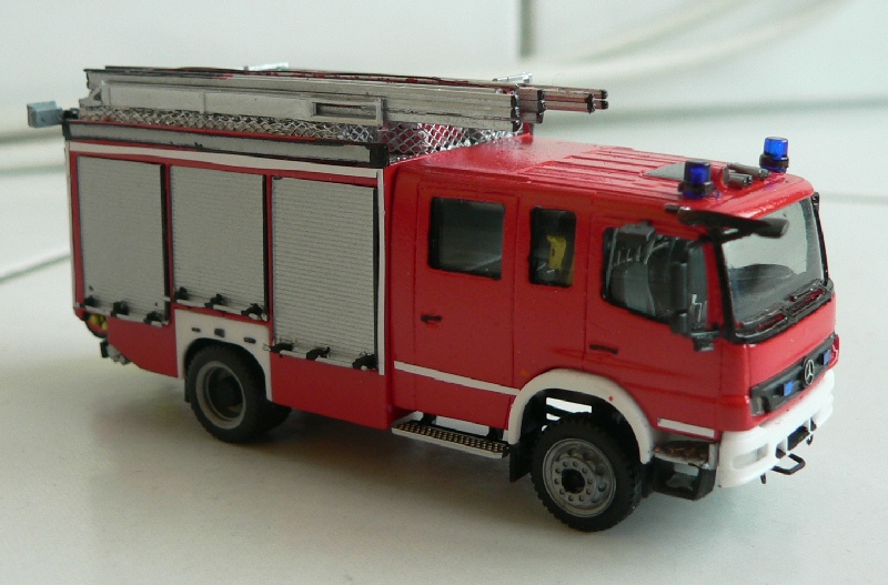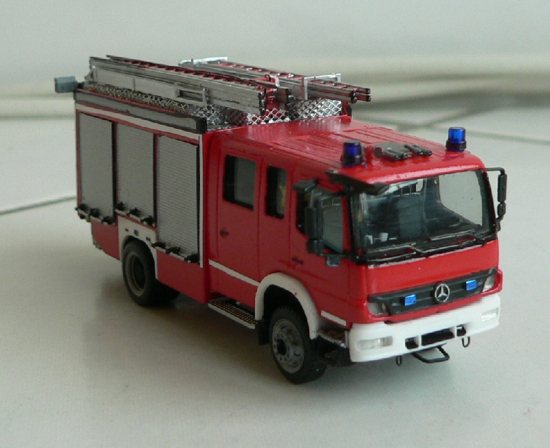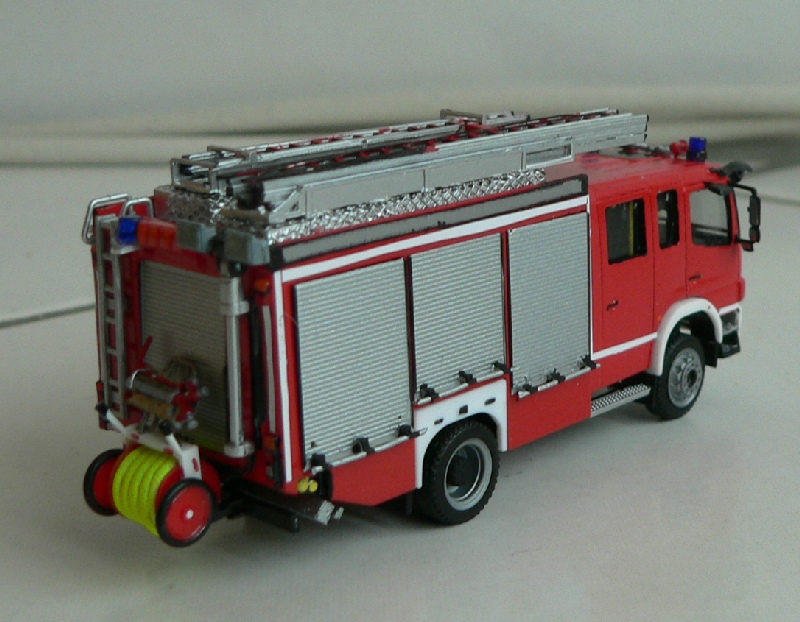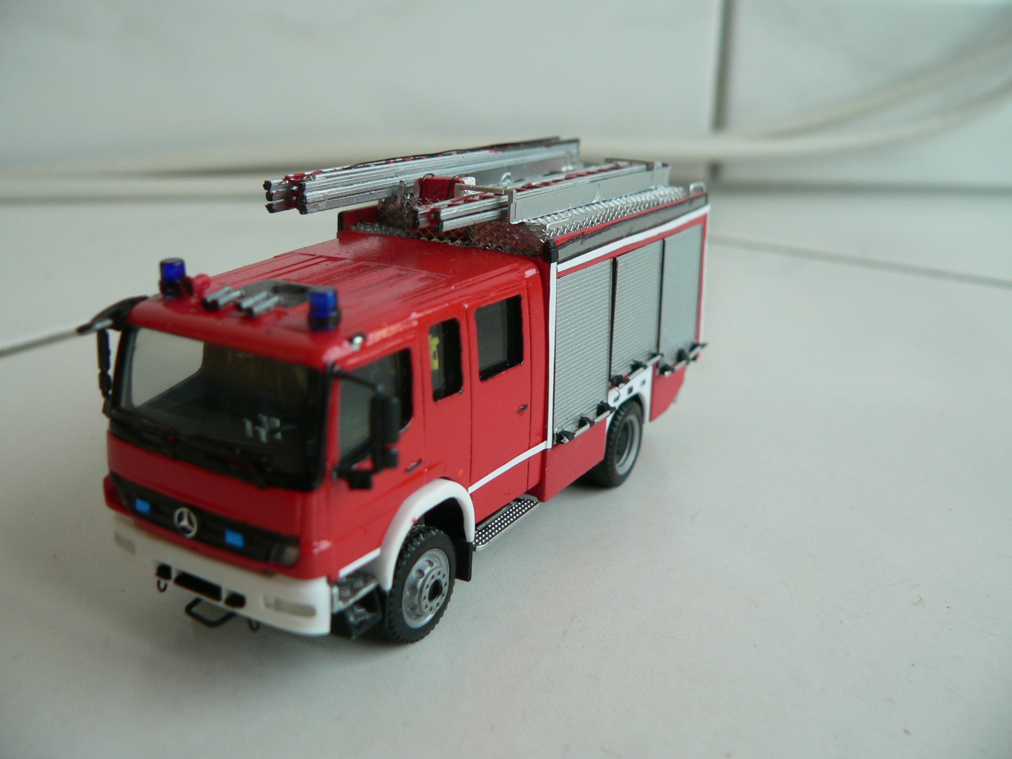 Also eigentlich ganz einfach. Es handelt sich um ein Herpa LF 20/16 auf Atego, wo neu lackiert worden ist und dementsprechend an das Orginal angepasst wurde.