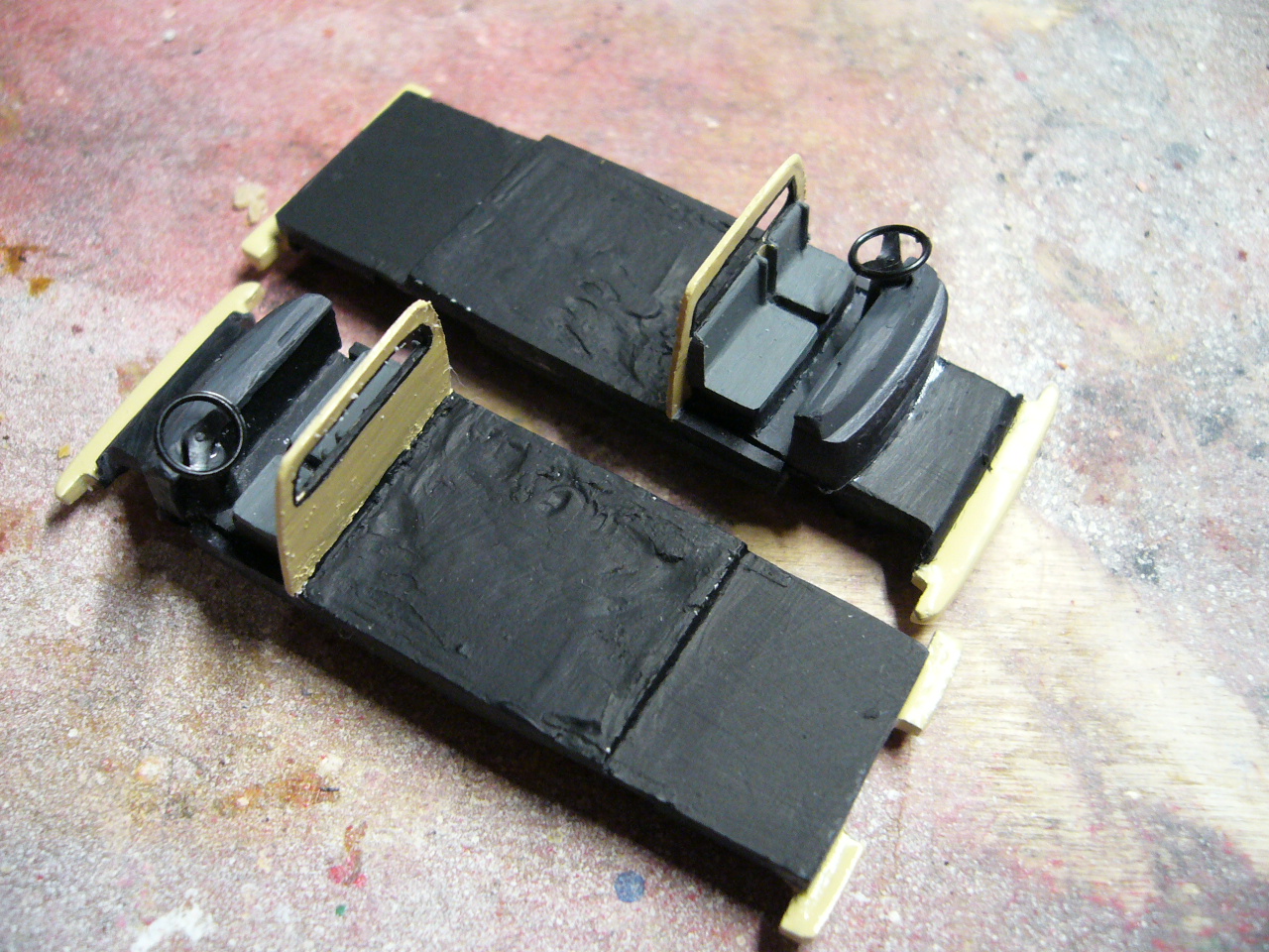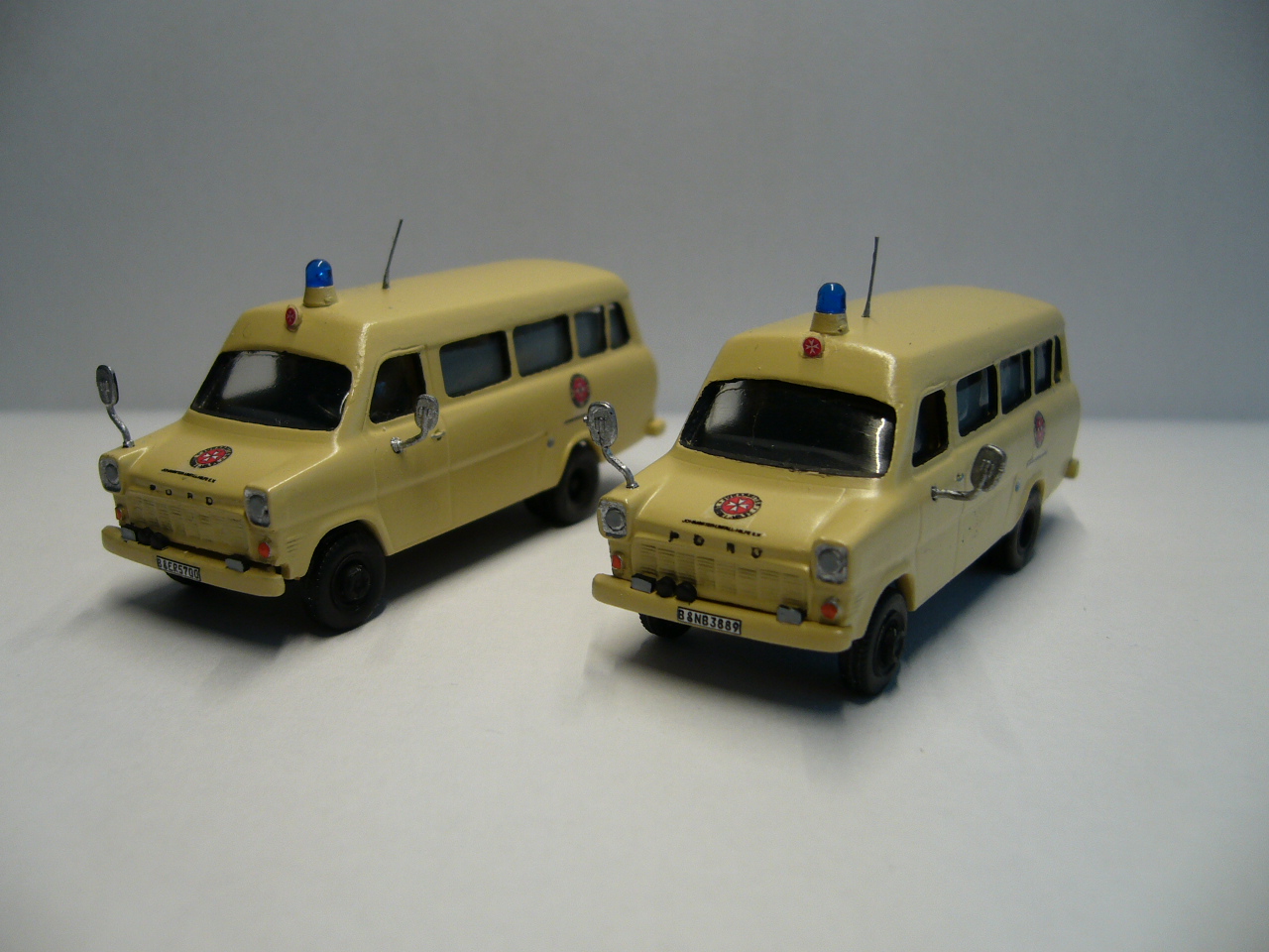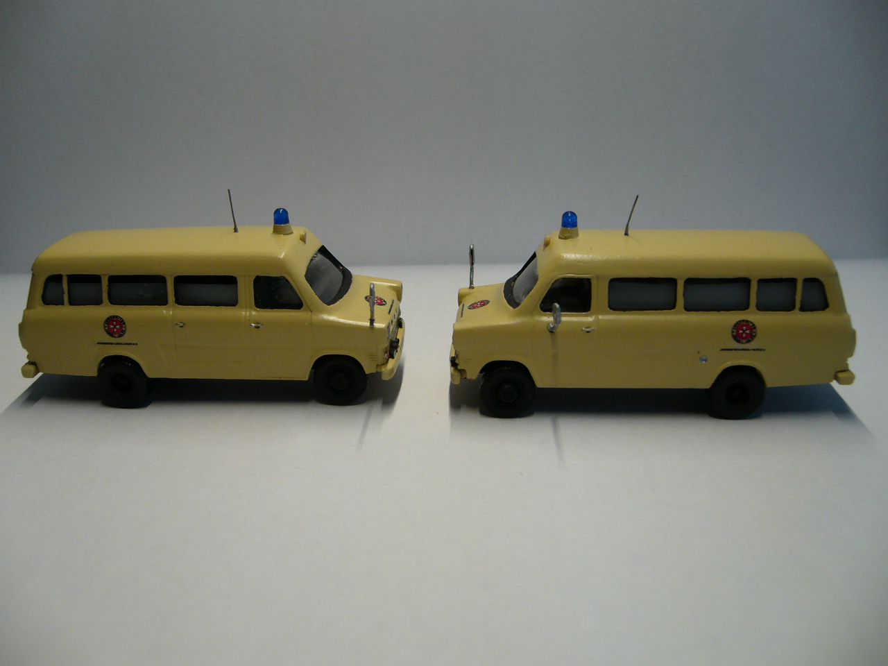 Aus den Vorlagen entstanden dann diese beiden "Kleinen". Einer wird demnächst auf die Reise geschickt - zu einem Bekannten dem genau der KTW noch fehlt. Der andere geht direkt ins Museum. Zu den Modellen: Lackierte Merlau-Bausätze, Kleinteile aus der Kiste dazu die Decals... nix Aufregendes.
