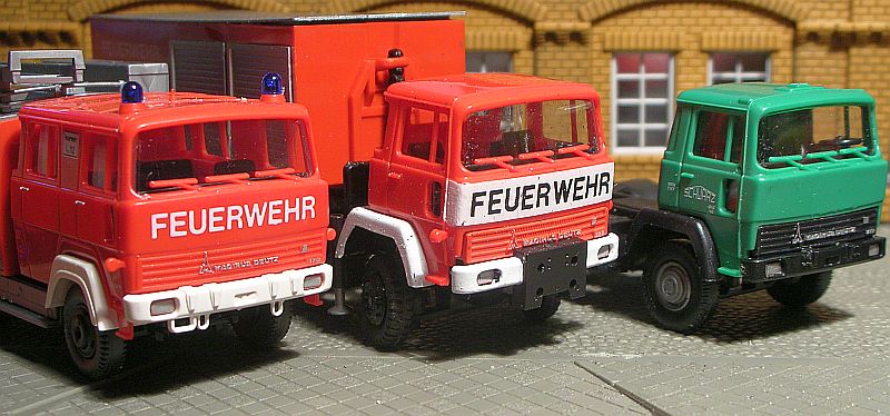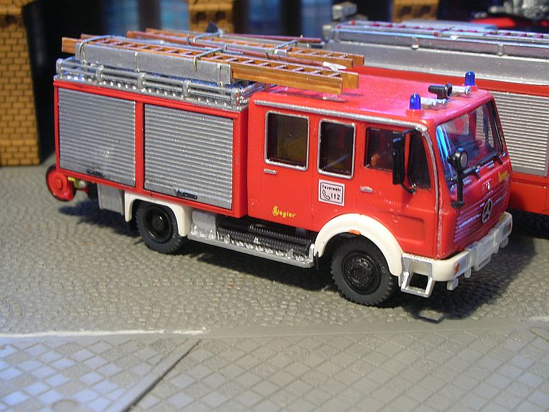 Mir gefällt's aber, und angesichts der gebraucht konkurrenzlos günstigen Basismodelle kann ich mit dem Fehler leben. Also erstmal ein passenderes Chassis (Mercedes L3500 Staffel) für meine neue Metzleiter besorgen -- Magirus mit Metzleiter, das geht ja nu gar nich :roll: --, ein bißchen dran rumsupern, und fertich ist mal wieder ein typisches Auto, dessen Modell nicht jeder hat :mrgreen: