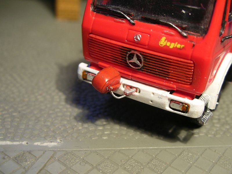 Am RW2 von letzter Woche Preiser-Allradfelgen, Chromspange im Grill und Lüftungsöffnungen in den Türen nachgetragen. Ach ja, und die hölzerne Schiebe- durch eine Alu-Steckleiter mit flacherer Roco-Leiterpritsche ersetzt, ist auch im ersten Bild zu erkennen.