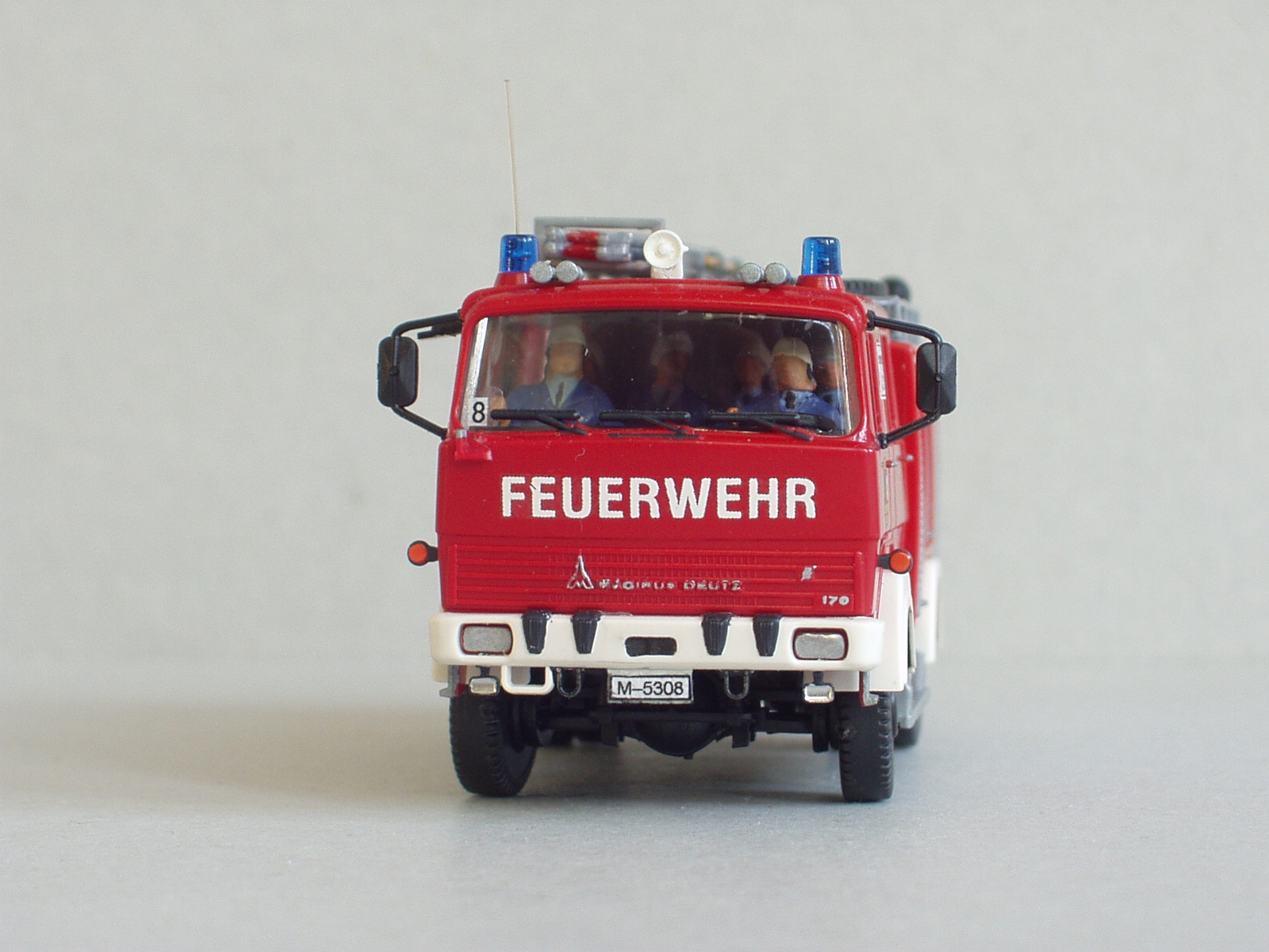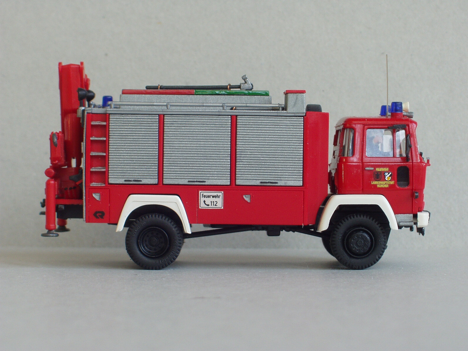 Das Preiser-Modell wurde lediglich mit einer Besatzung, einer feuerwehrtechnischen Beladung, Kleinteilen und Decals versehen.