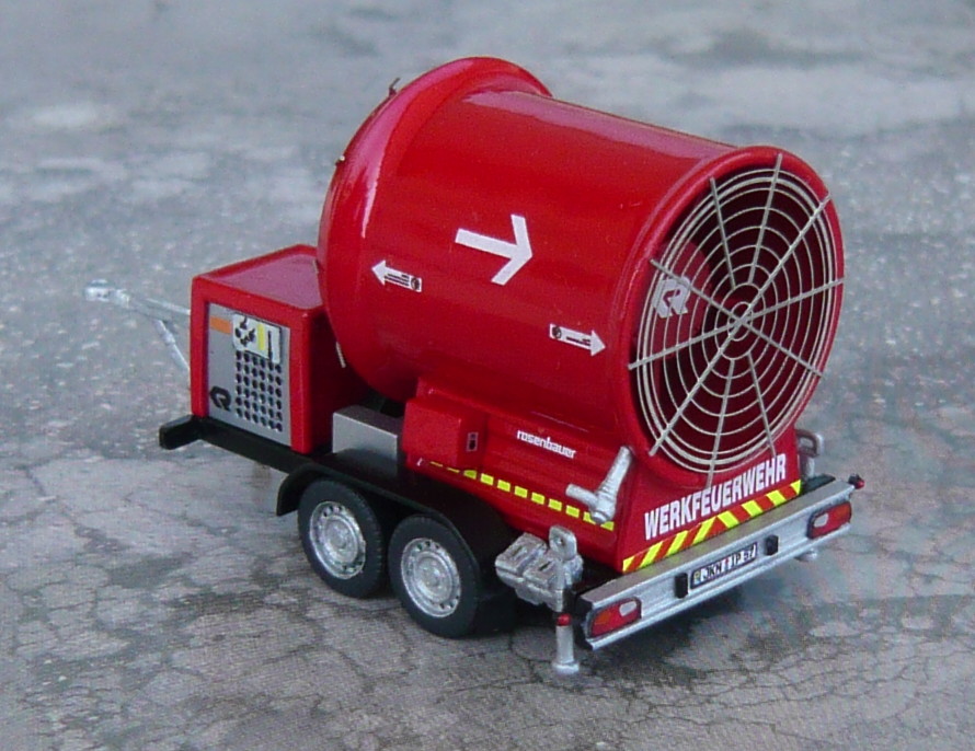 Kurzerhand wurde das erste für die Werkfeuerwehr IPJ geplante Modell auf "Platz 2" verschoben und ein weiterer Tunnellüfter-Anhänger von Wiking auf das Erscheinungsbild der WF getrimmt.