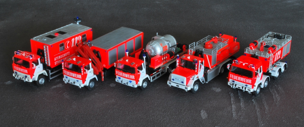 Hier noch ein Bild mit allen Magirus Wechselladerfahrzeugen aus meiner Sammlung: