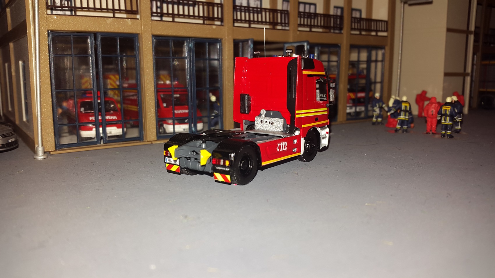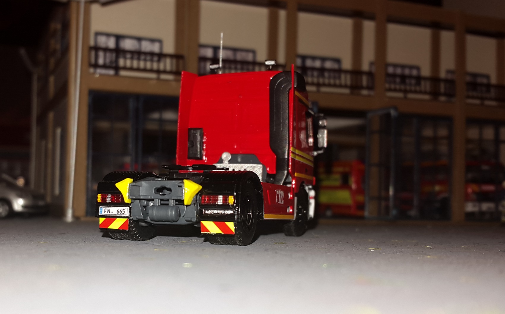 - Die Rückleuchten der Zugmaschine haben Farbe bekommen