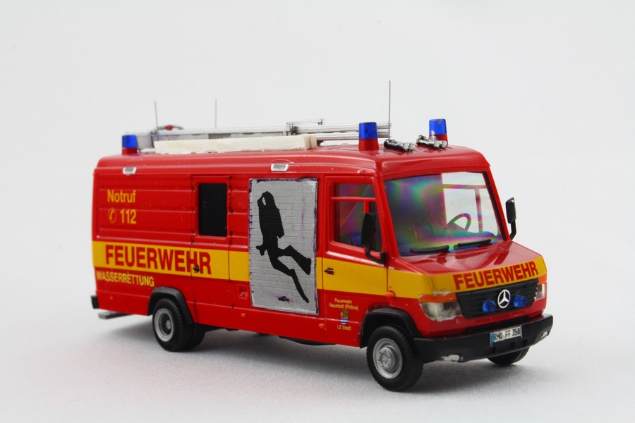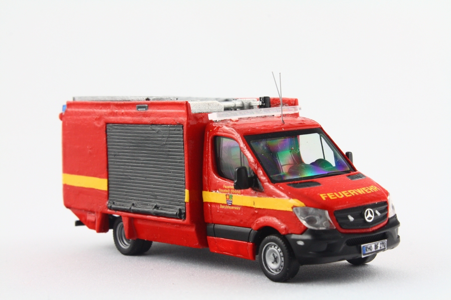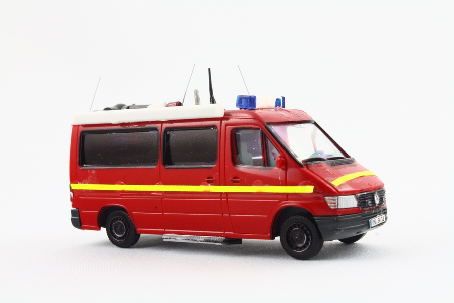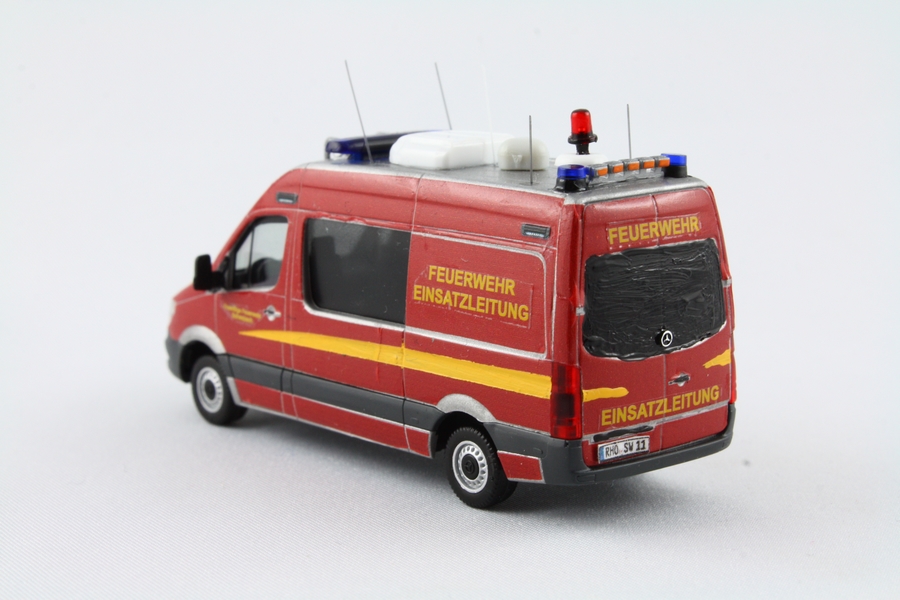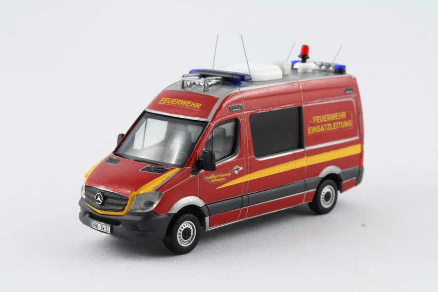 Bilder von den aktuellen KTW habe ich leider noch nicht. auf meiner Seite sind noch die alten zu sehen. Mittlerweile habe ich dafür zwei 2013-er Sprinter mit Hochdach (neutrales Herpa-Modell) mit Konzeptanpassung, Decals und je zwei Hänsch DBS 4000 Warnbalken auf dem Dach.