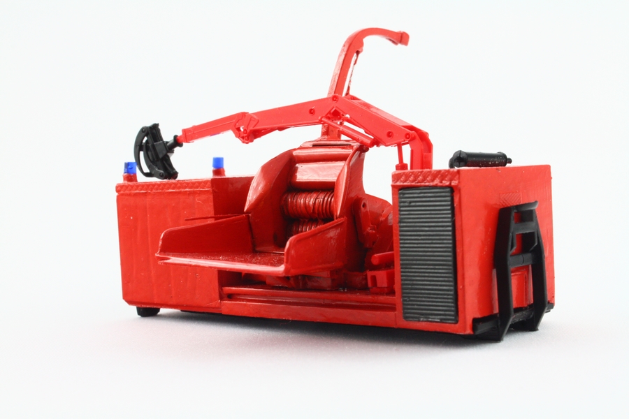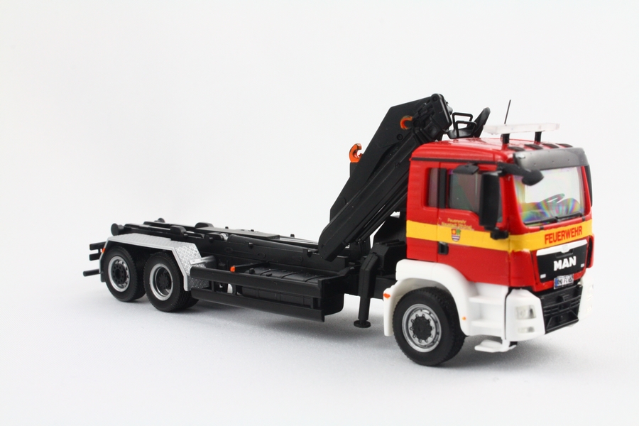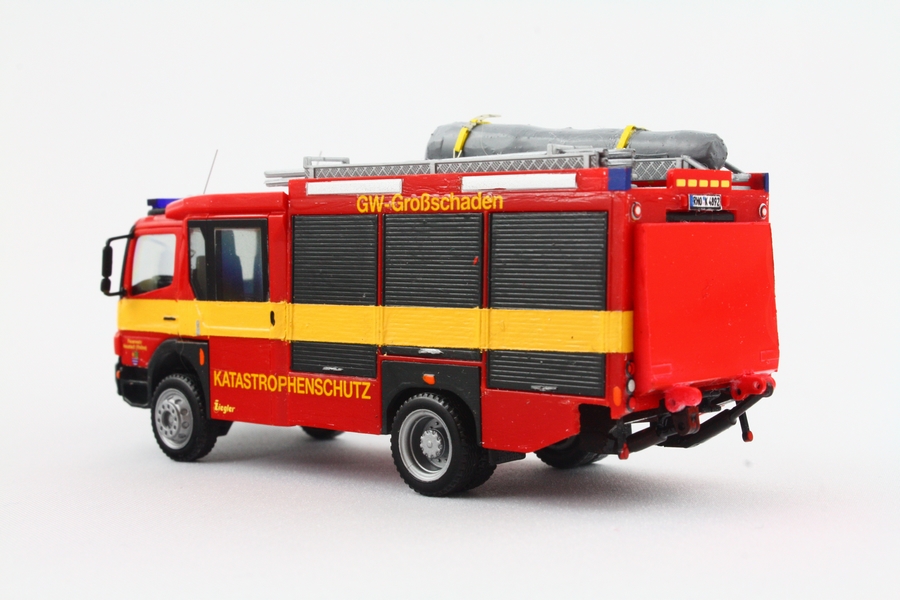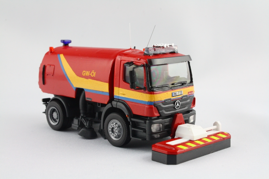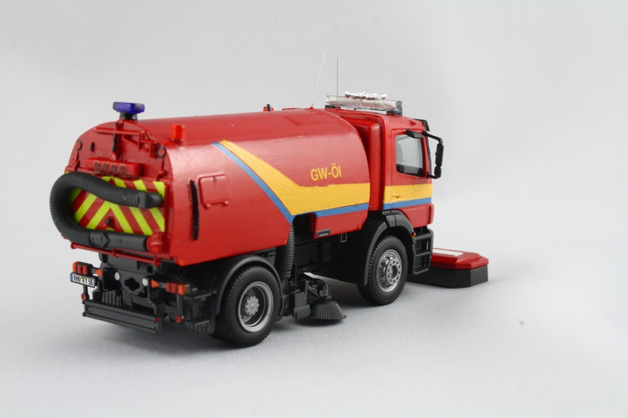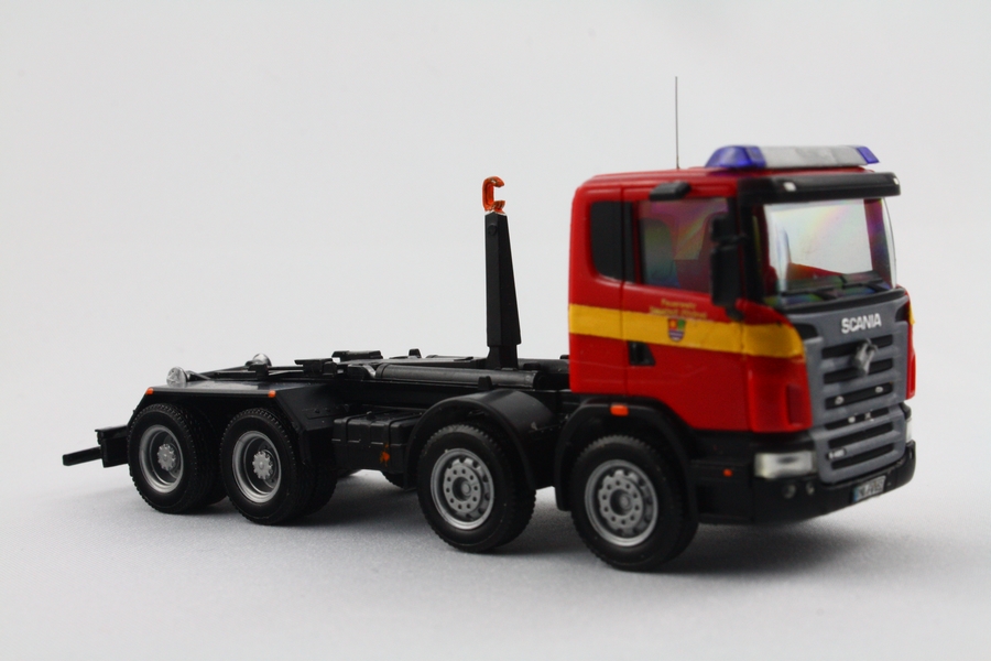 Ich nenne das jetzt mal so. An sich ist das ein Bereich zwischen Berufsfeuerwehr, Freiwilliger Feuerwehr und Leitung der Feuerwehr. hier sind alle Fahrzeuge untergebracht, die ich nicht fest einer Einheit zuordnen wollte. Hier fallen z.B. der KdoW des Leiters der Feuerwehr, der ELW 1, ein kleiner MTW, ein Gabelstapler, ein Teleskoplader (noch im Bau), die drei WLF's und die ganzen ABs rein. KdoW, ELW 1 und MTW sind Serienmodelle, bei denen nur Feinheiten verändert wurden (z.B. beim MTW die Wappen und Funkkenner entfernt). Die WLF wurden farblich angepasst. Beim Scania war es "nur" die gelbe Bauchbinde, andere SoSi, Presslufthorn, Decals und Kennzeichen. Die beiden MA waren da schon aufwendiger. Das 02-er WLF (mit dem durchsichtigen Balken) war ein Messemodell der Feuerwehr Aachen zur Interschutz 2015. Die Lackierung wurde hier grundlegend angepasst, auch hier neue SoSi und Decals.