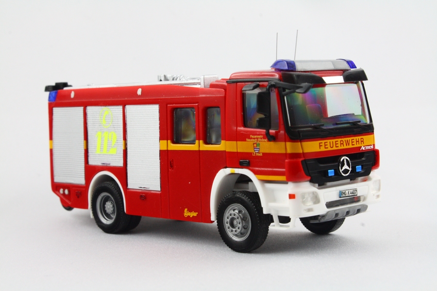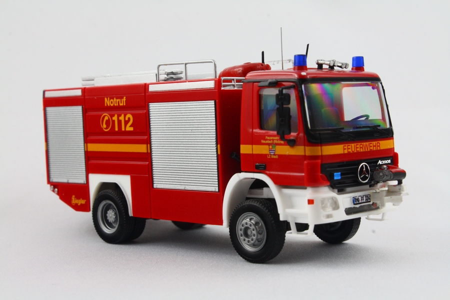 Mit der Zeit wurde die Eisenbahn immer uninteressanter, auch weil es jedes Mal mit einem Auf- und Abbauen der Platte verbunden war. Dafür rückten die Fahrzeug immer weiter in den Vordergrund. Wurde anfänglich noch alles gesammelt, was toll aussah, konzentrierte sich der Schwerpunkt ab ca 2010 auf ein Konzept. Es entstand die fiktive Feuerwehr Neustadt (Rhône) im Landkreis Rhône. Die Rhône soll zudem ein Fluss sein, der sich durch Neustadt (zugleich Kreisstadt) schlängelt. Der Name ist einem Bahnhofsgebäude geschuldet, so wie auch der Names des Ortsteiles Kirchbach.