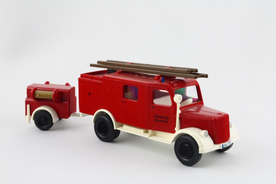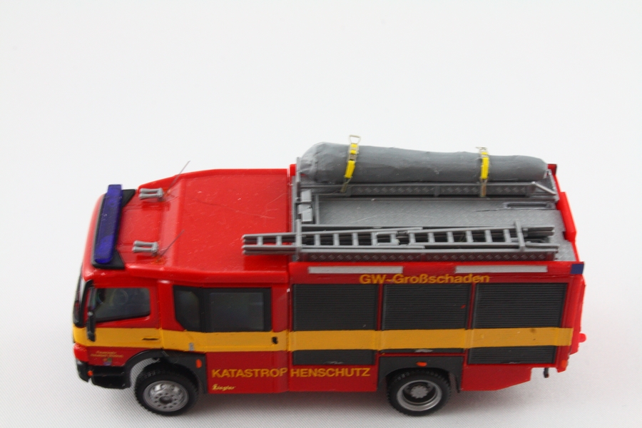 Doch erstmal kurz zu mir: Im Alter von ca. 8 Jahren bekam ich an Weihnachten eine Modelleisenbahn geschenkt. Als ersten Vorboten gab es vorher zum Nikolaus ein TLF 24/50 auf Mercedes-Benz NG 80 von Wiking (dürfte ja hier hinlänglich bekannt sein). Auf der Platte standen neben den Zügen auch ein paar alte DDR-Feuerwehr-Modelle (S 4000 TLf 16 und DL 30, Barkas KTW und KLF). Damit fing es dann an. Mit dem Eintritt in die Jugendfeuerwehr im Alter von zehn nahm ich den jährlichen Wissenstest teil, wo es als Preise immer Herpa Feuerwehrfahrzeuge gab. Mit der Zeit merkte ich aber, dass die Modelle von der Realität abweichen und fing an, an diesen herum zu doktern. So wurde z.B. die DLK 23/12 auf Stülpkorb "umgebaut". Wie sagt man so schön? Bastlerische Jugendsünden.