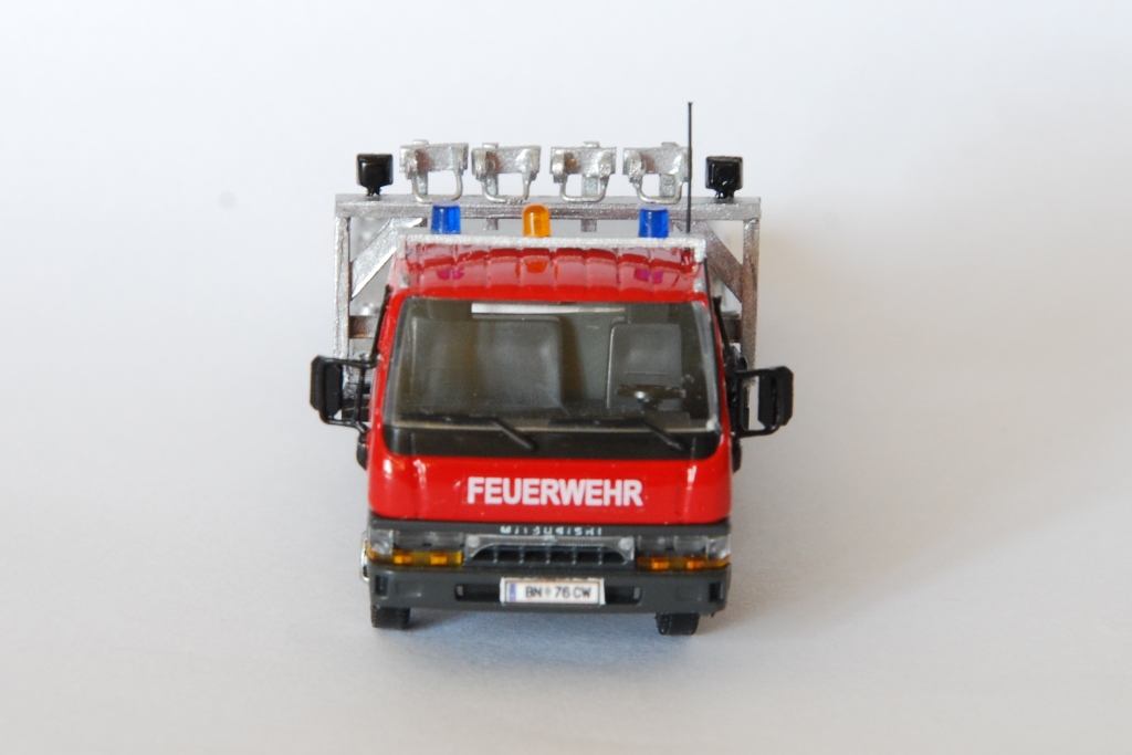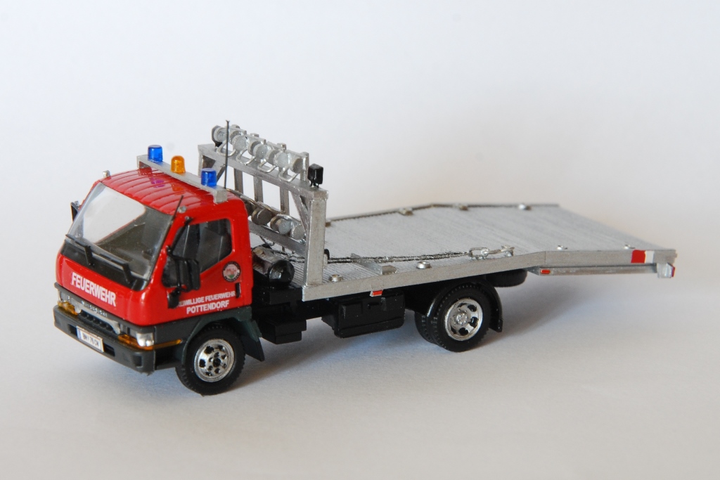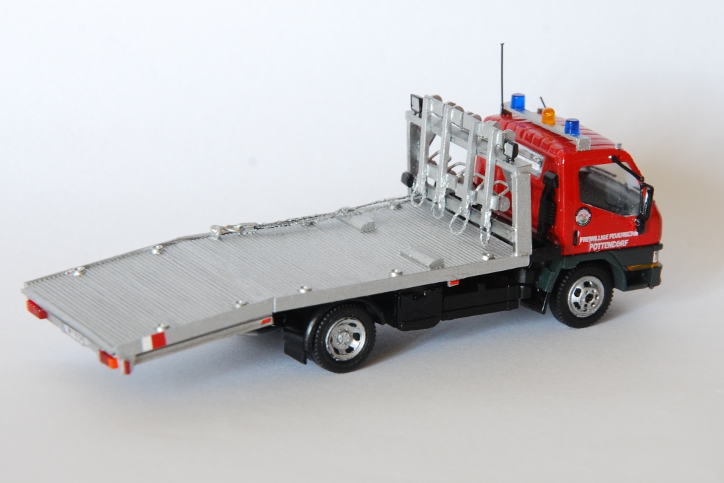 zwischendurch entstand ein weiteres Fahrzeug "meiner" Heimatwehr - und zwar das Sonderfahrzeug "LAST" der Freiwilligen Feuerwehr Pottendorf. Der Mitsubishi Canter, Baujahr 2001, ist mit einer Ladefläche für PKW und einer Seilwinde zur Fahrzeugbergung ausgestattet. Ebenso werden diverse Befestigungsmittel in den Gerätekästen und auch 4 Transportroller für havarierte PKW am Podium mitgeührt.