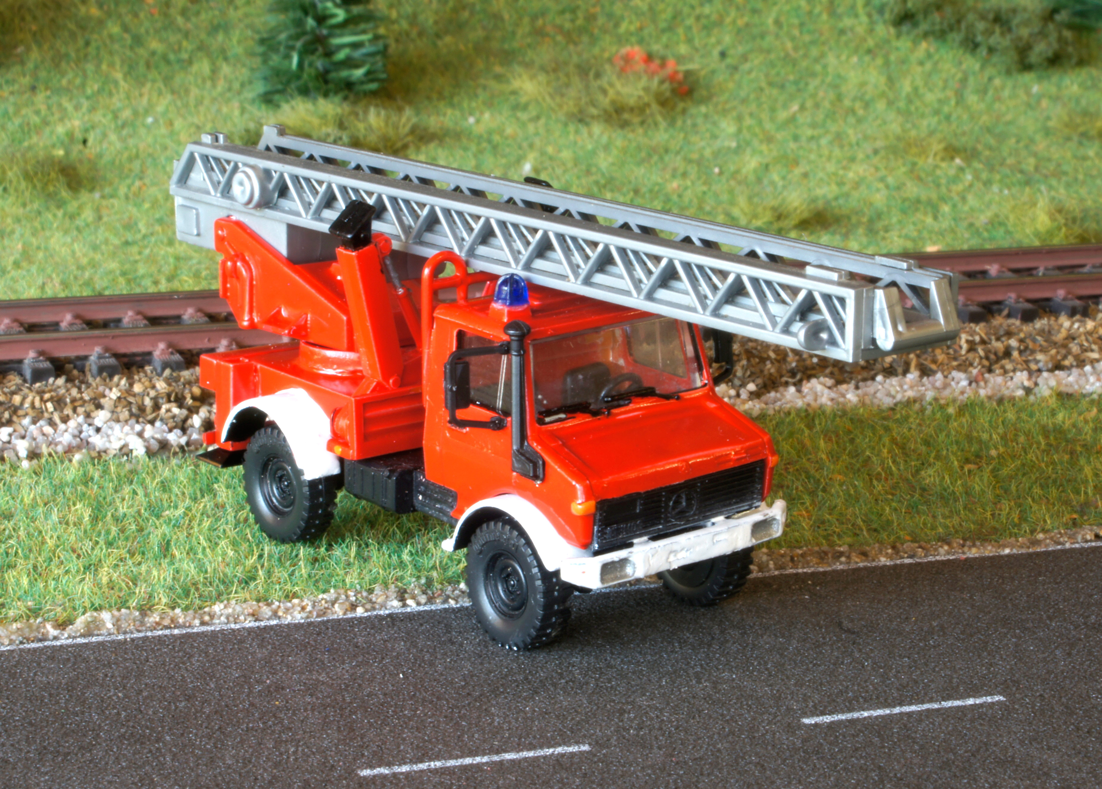 Fahrgestell und Kabine von Roco, Abstützung von Kibri und Leiter von Herpa.