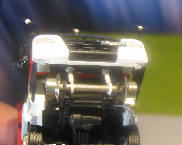 Die vordere wurde aus einem Zweiwege Unimog von Kibri mit zusätzlichen Hubzylindern gebaut.