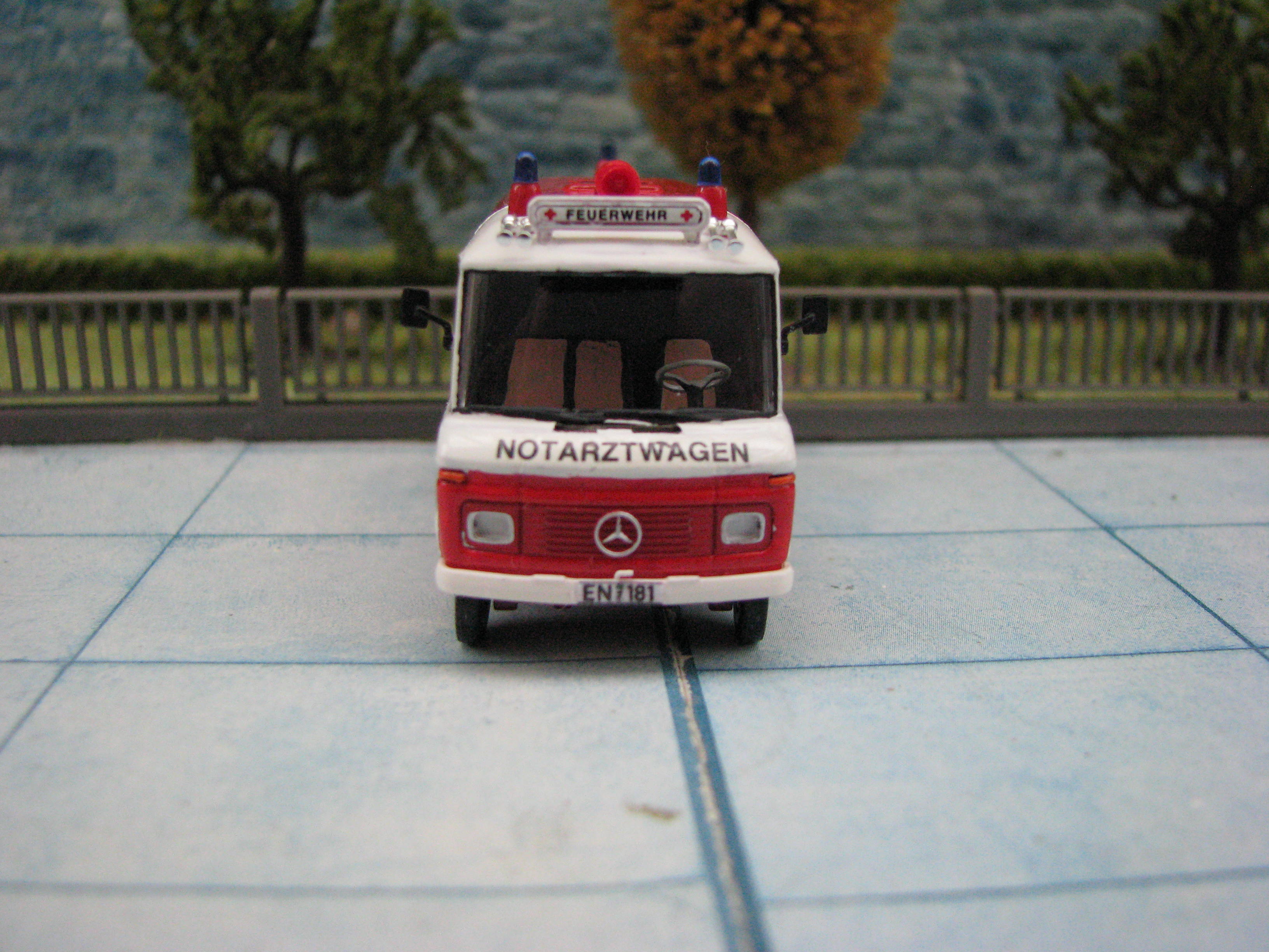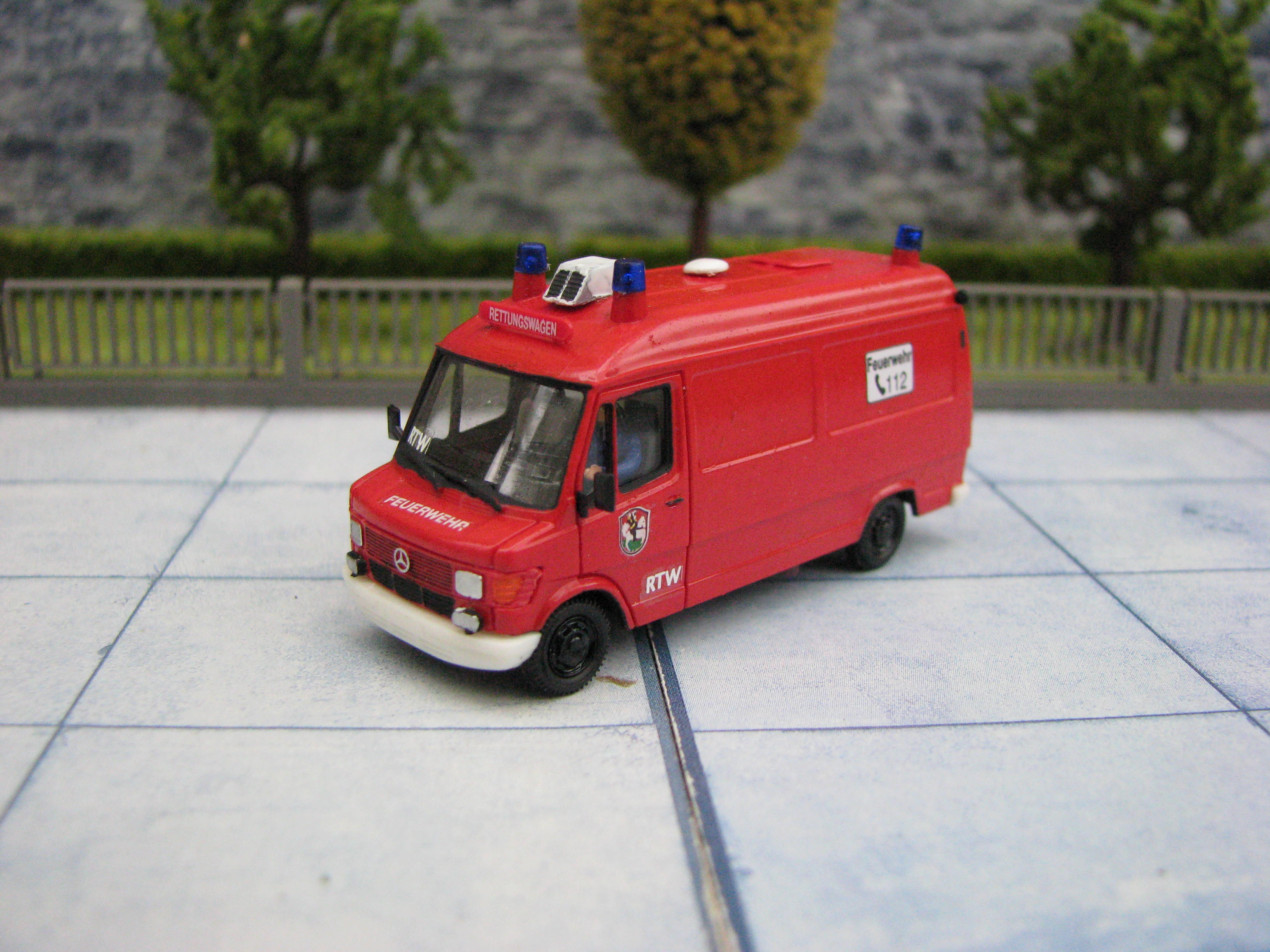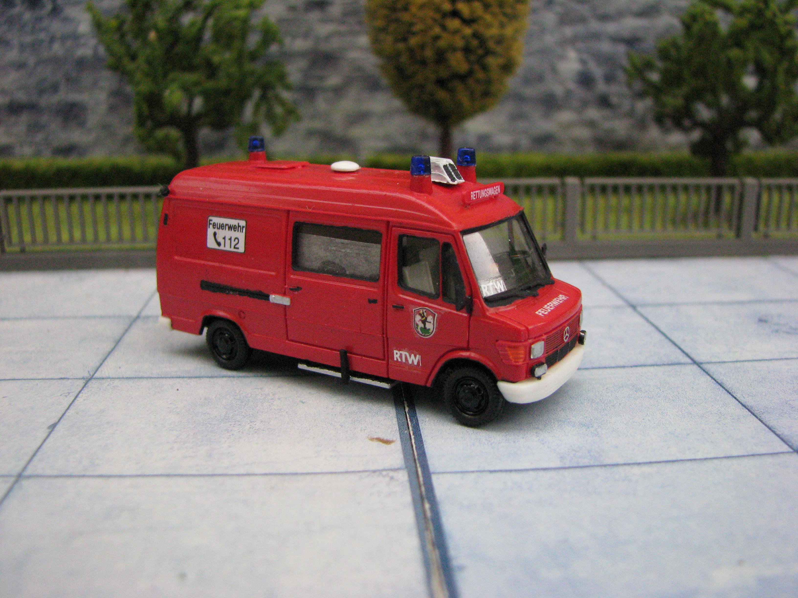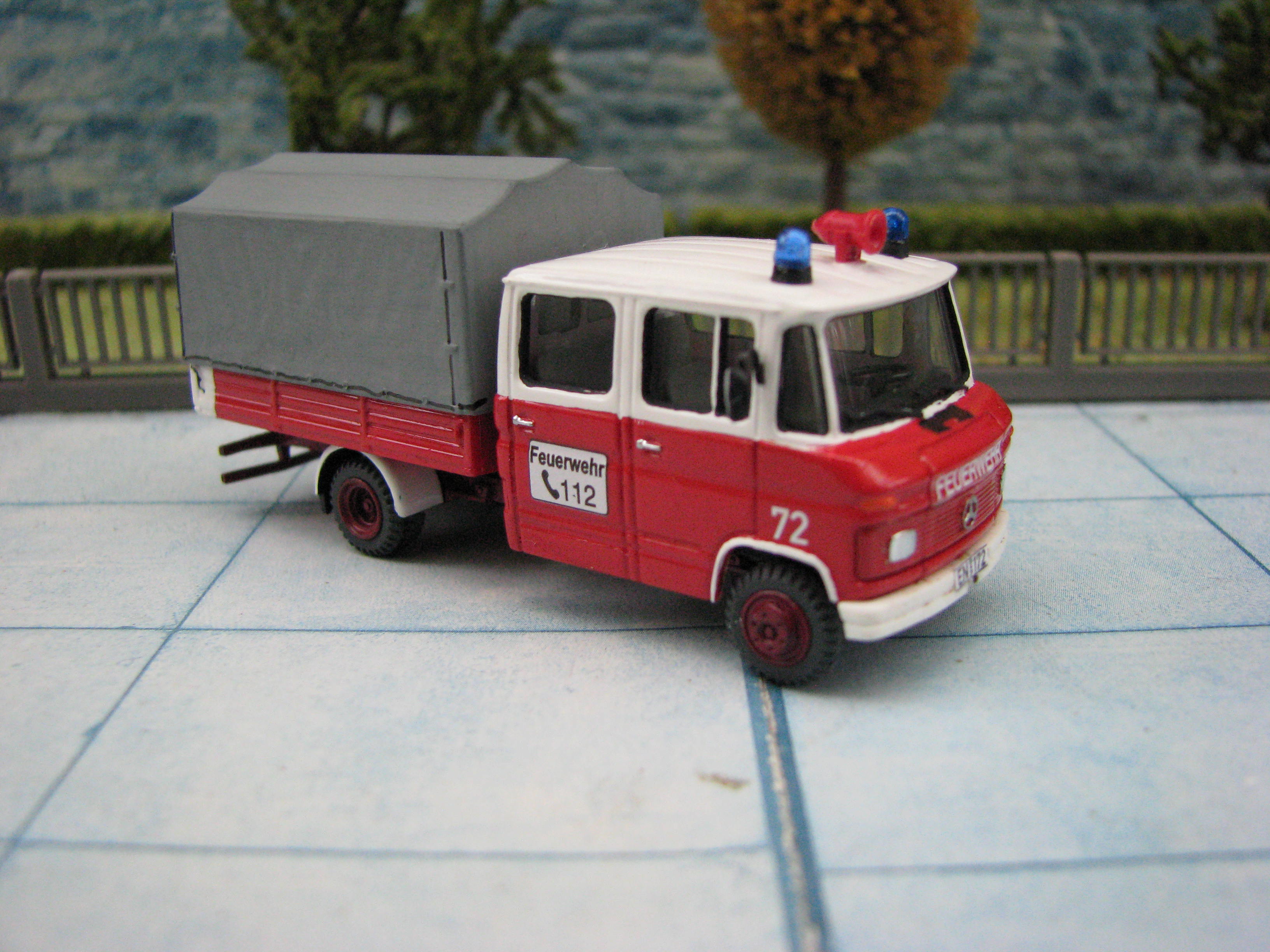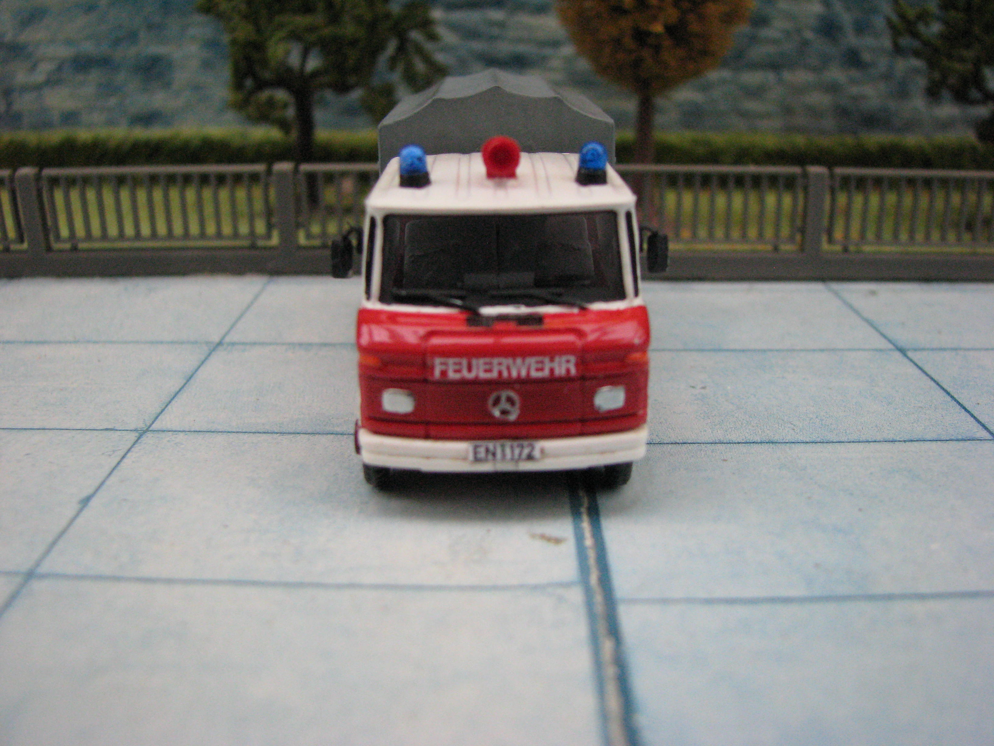Das Rietze Modell wurde lediglich von seiner Bedruckung (Frechen) befreit und mit Decals, neuen Rückleuchten, Schlauchbrücken, Leitern, Einreißhaken sowie Sosi bestückt.