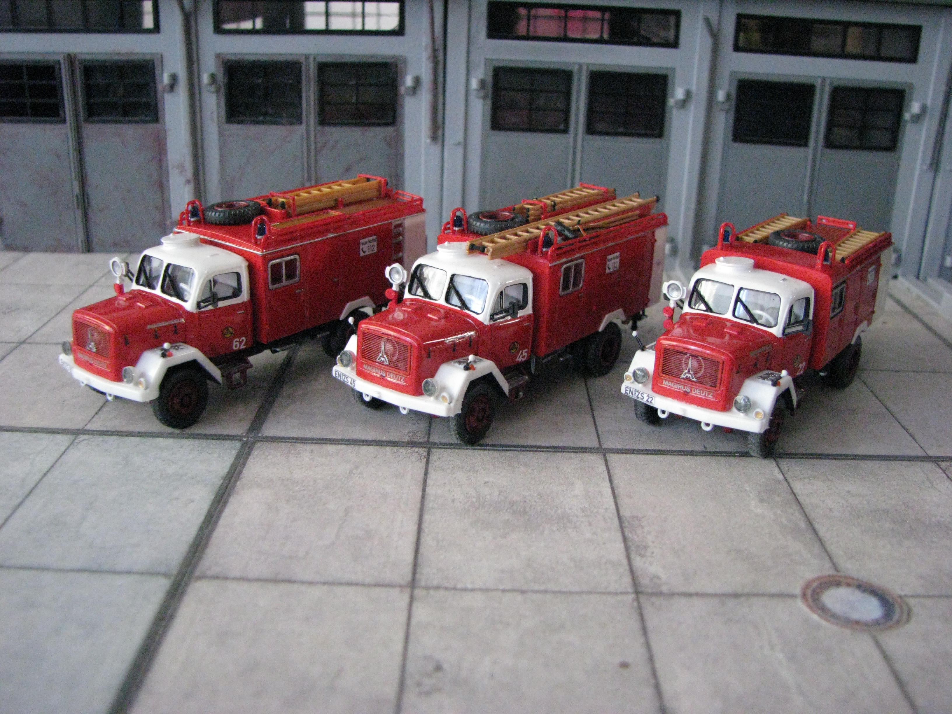 nachdem ich vor kurzem meine DLK 23/12 n.B auf Magirus gebaut hatte, kahm der Gedanke an einen dazu passenden Löschzug. Vorbild war hier die BF München. Dieser Löschzug besteht aus einem ELW, LF 16, DLK 23/12 n.B., TroTLF und RTW. Aktuell fehlt allerdings noch das LF aber ich möchte Euch trotzdem die Modelle schon mal zeigen.