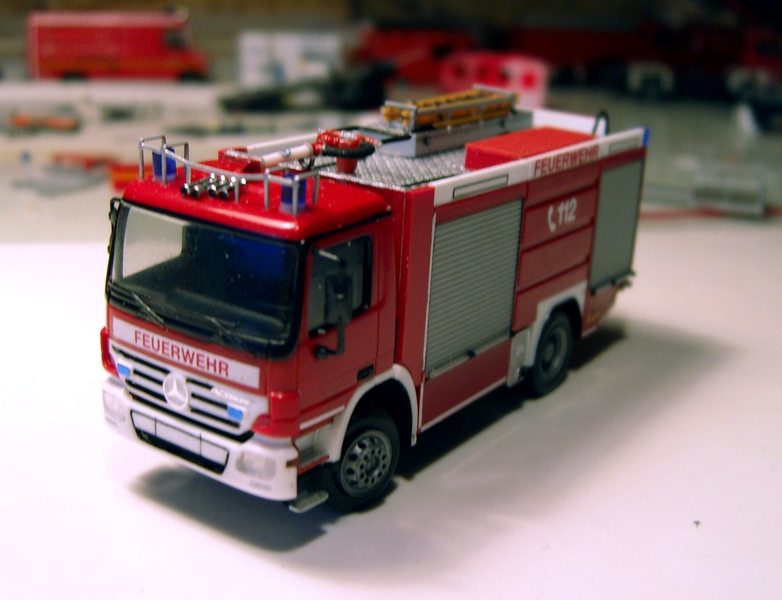 Als meine LAP (LebensAbschnittsPartnerin) mit dem Satz: "hab dir was mitgebracht" vom letzen Shopping kam dachte ich an ein schönes paar Socken - doch nix da.... ein TLF von Herpa lag im Korb. Danke Schatz mal was anderes als Berlin und Hamburg - und ab in`s Kämmerlein. Dachte ich mach ne MAN TGA Kabine ran und dann sieht es schon gut aus. Wenn da nicht der MB Auspuff gewesen wäre. Also zurück auf Actros und dafür noch ein paar Details geändert....