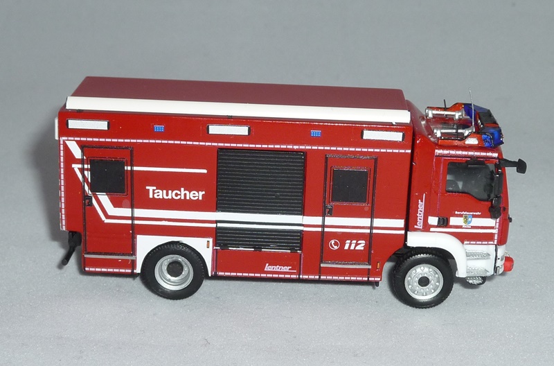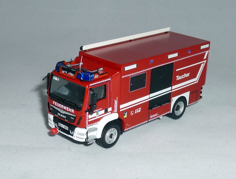 Kabine liefert Herpa, Unterteil der Kabine vom MAN TGA nur etwas geändert. Aufbau TBM (LF-L Frankfurt), Blaulichtaufbau von Shapeays, 3D Decals, Fahrgestell von Herpa und kleinteile aus der Bastelkiste.
