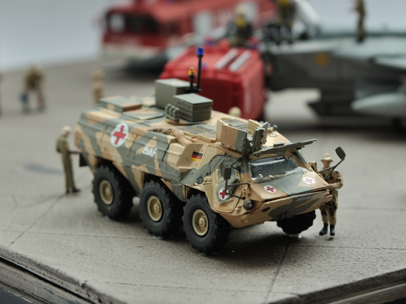 Bei diesem Diorama mußte ich erst überlegen, ob ich es hier präsentiere. Da aber alle gezeigten Modelle unbewaffnete Vorbilder haben (ja, auch der Klappdrache, es handelt sich um die komplett unbewaffnete Aufklärungsversion die zeitweise in Afghanistan stationiert war) habe ich mich dafür entschieden.