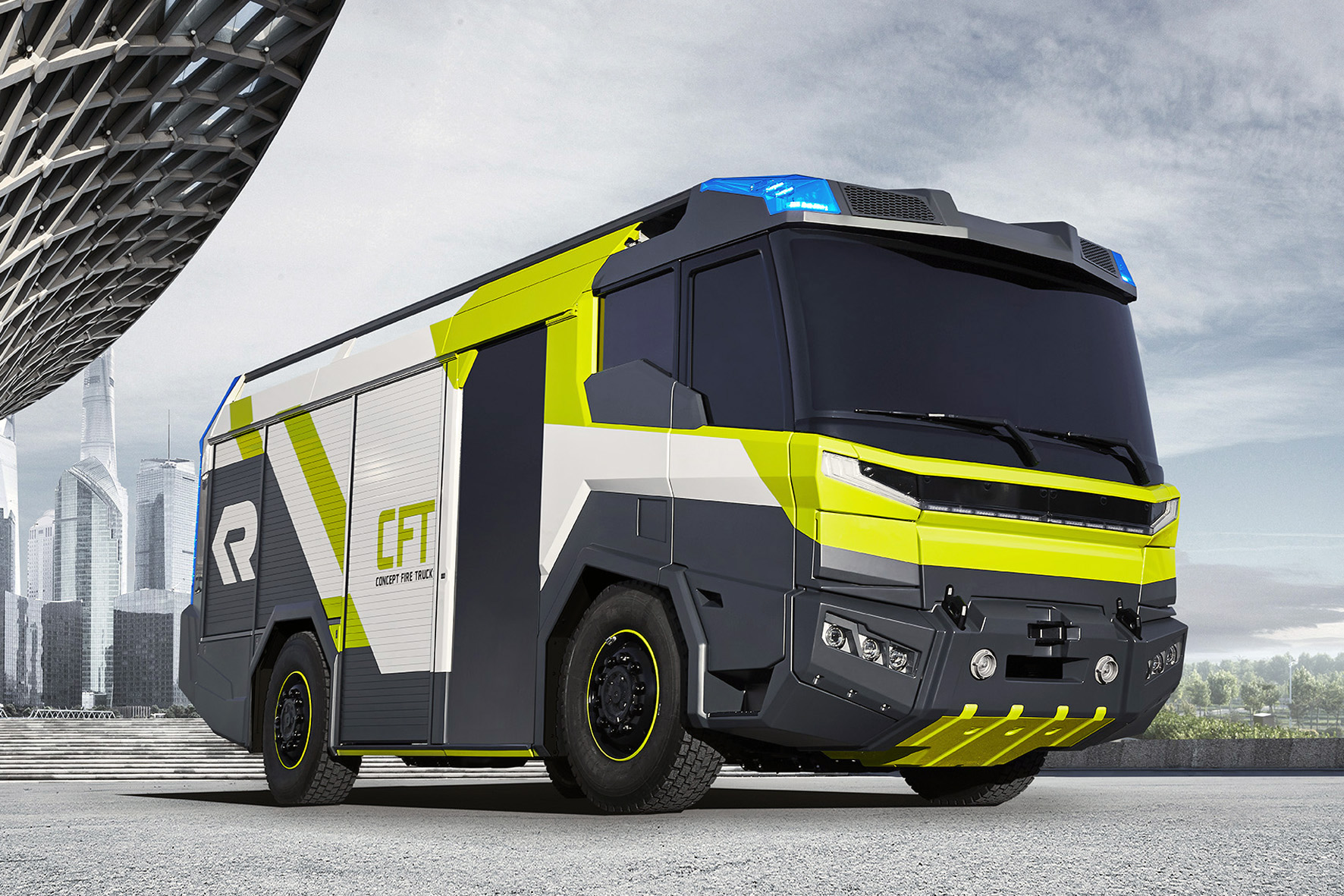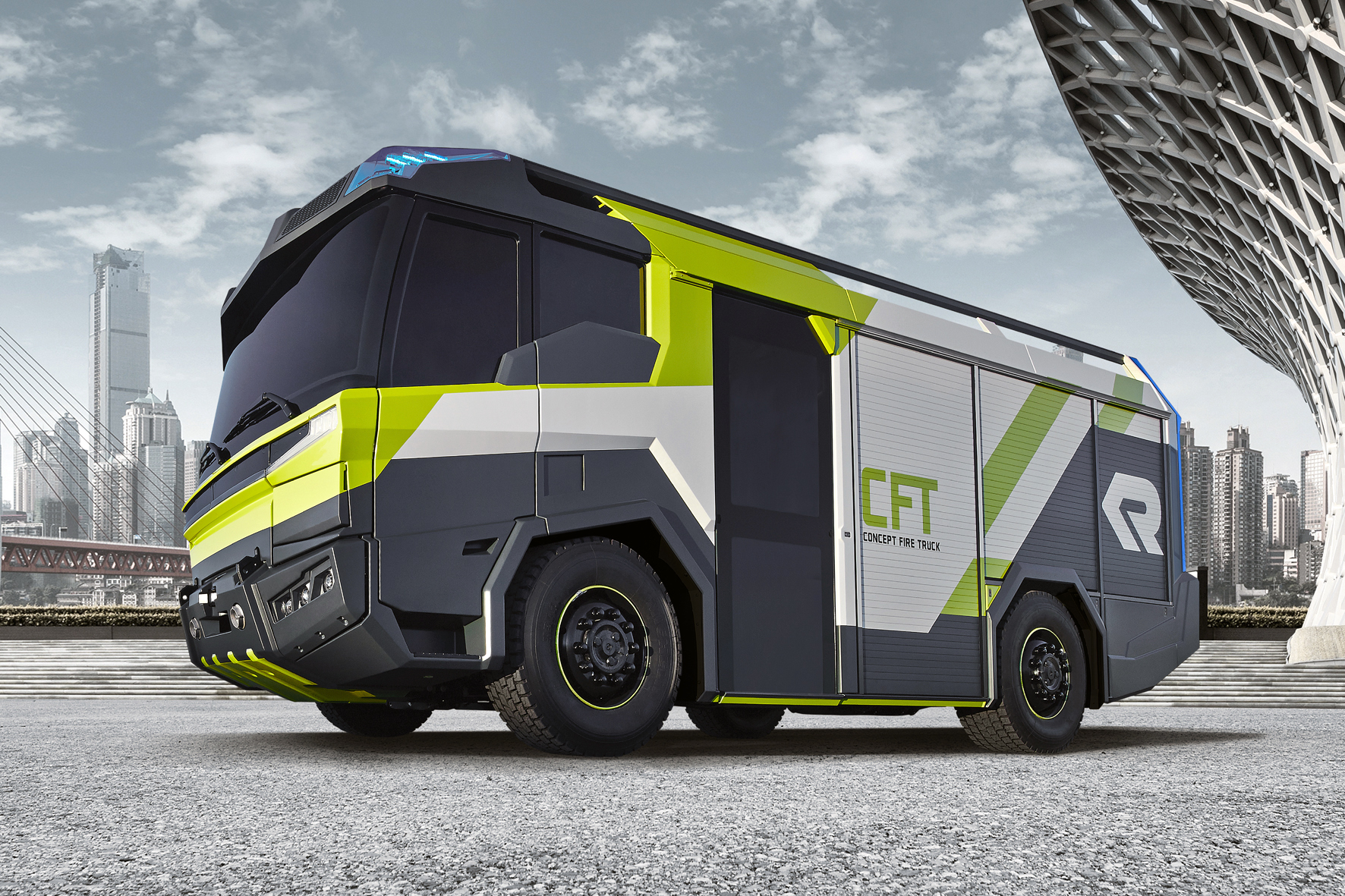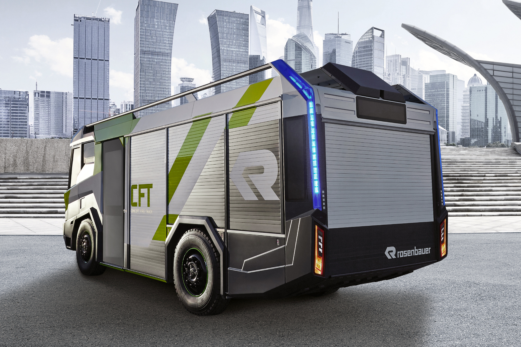 Im Rahmen des 150-Jahr-Jubiläums präsentierte Rosenbauer eine Konzeptstudie, mit der der österreichische Feuerwehrausstatter einmal mehr seinen Anspruch auf Technologieführerschaft untermauerte. Der Concept Fire Truck (CFT) ist ein Vorgeschmack auf das Feuerwehrfahrzeug der Zukunft. Die Entwicklungsingenieure legten ihr Augenmerk gezielt auf die Fahrzeugarchitektur, die herauskommt, wenn man die zukünftigen Anforderungen an die Feuerwehren konsequent und ohne Abstriche in der Fahrzeugentwicklung berücksichtigt.