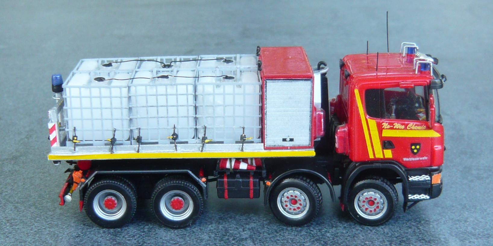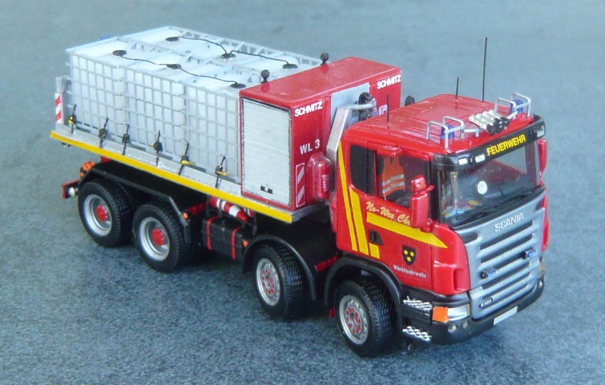 Die WF hat nartürlich vor einiger Zeit auch einen WL in Dienst gestellt.Die Ausschreibung hat zur damiligen Zeit die Fa.Scania gewonnen.Die WF besteht sowieso auf den Standpunkt keinen Typenreinen Fuhrpark zu besitzen.Der AB wurde angeschaft um Flüssigkeiten aufzunehmen.
