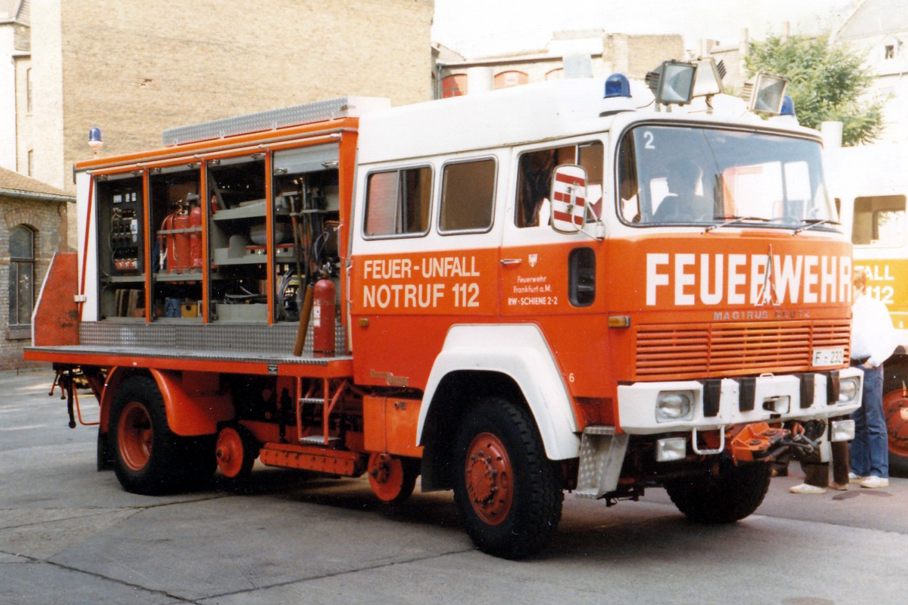 Ich war nämlich gestern im Florianweg in Frankfurt und habe den RW-Schiene mit dem Kennzeichen F-292 besucht. Leider konnte der RW seinen Standplatz in der Halle nicht verlassen, denn an dem Fahrzeug wird immer noch fleißig gewerkelt und geschraubt. So war es mir nur möglich einige Details zu fotografieren.