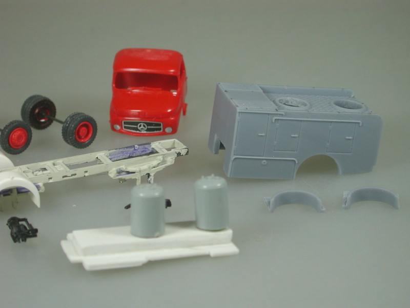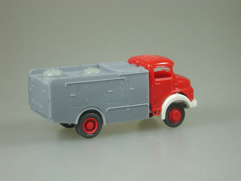 Gruß, JürgenReinhard Merlau hat geschrieben:Gleich zwei Oldies der BF Frankfurt aus der Goldenen Zeit der Sechziger Jahre gehen in diesen Tagen in die Produktion bei RMM. Er handelt sich um eine Wiederauflage des alten Allrad Tanklöschfahrzeugs TLF 16-12 auf Mercedes-Benz LAF 322 /36 mit Metz-Aufbau. Während das Fahrerhaus nur eine ganz leichte Oberflächenmodifizierung erhielt, wurde der Aufbau in einem hochwertigen 3-D-Druckverfahren neu erstellt. Auch das Trittbett und der hintere Kotflügel erfuhren eine Neuauflage. Sehr filigran gestaltet sind die Druckabgänge (4 rechts und 2 links), die von innen unter den Aufbau geklebt werden müssen. Weiteres Zubehör sind zwei Astabweiser für das Fahrerhaus, ein Heckabschluss und eine filigrane Leiterpritsche (hier nicht bebildert). Das Fahrgestell wurde im Bereich der Federpakete erhöht und ist universell auch für andere MB-Kurzhauber Allradler verwendbar.