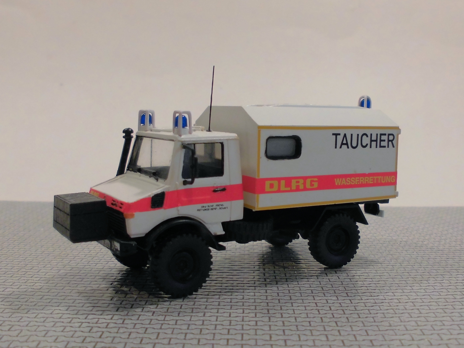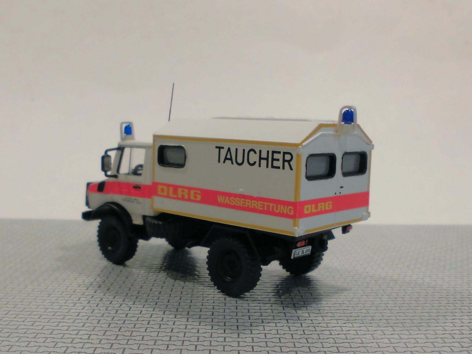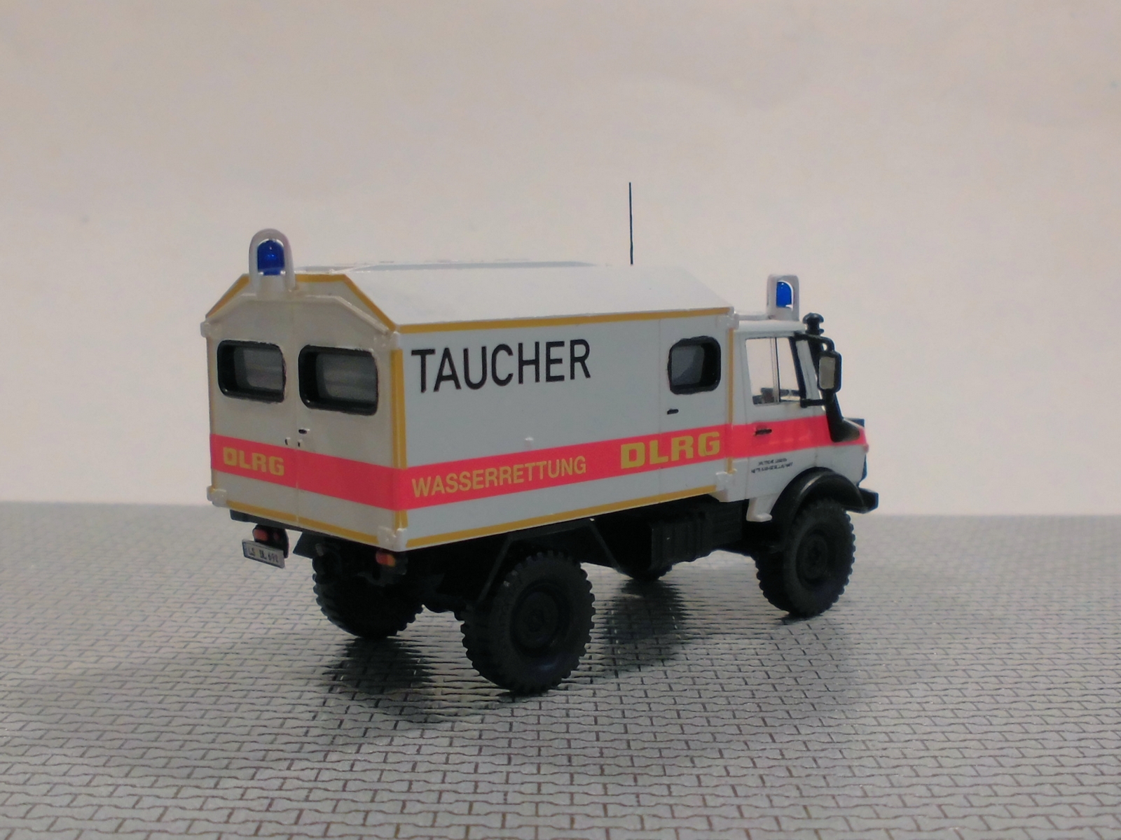 Man hat in Löwenstadt ganz offensichtlich wenig Hemmungen, sich von anderen den Ideen anderer Ortsgruppen inspirieren zu lassen. So wie für den vorherigen GW-Taucher ein Fahrzeug aus Rüsselsheim Pate stand, hat man sich bei dem zweiten GW-Taucher Anregungen in Cuxhaven geholt. Dort fährt, genau wie jetzt auch in Löwenstadt, ein umgebauter Unimog U 1300L, welcher ehemals ein Krankentransportwagen der Bundeswehr war.