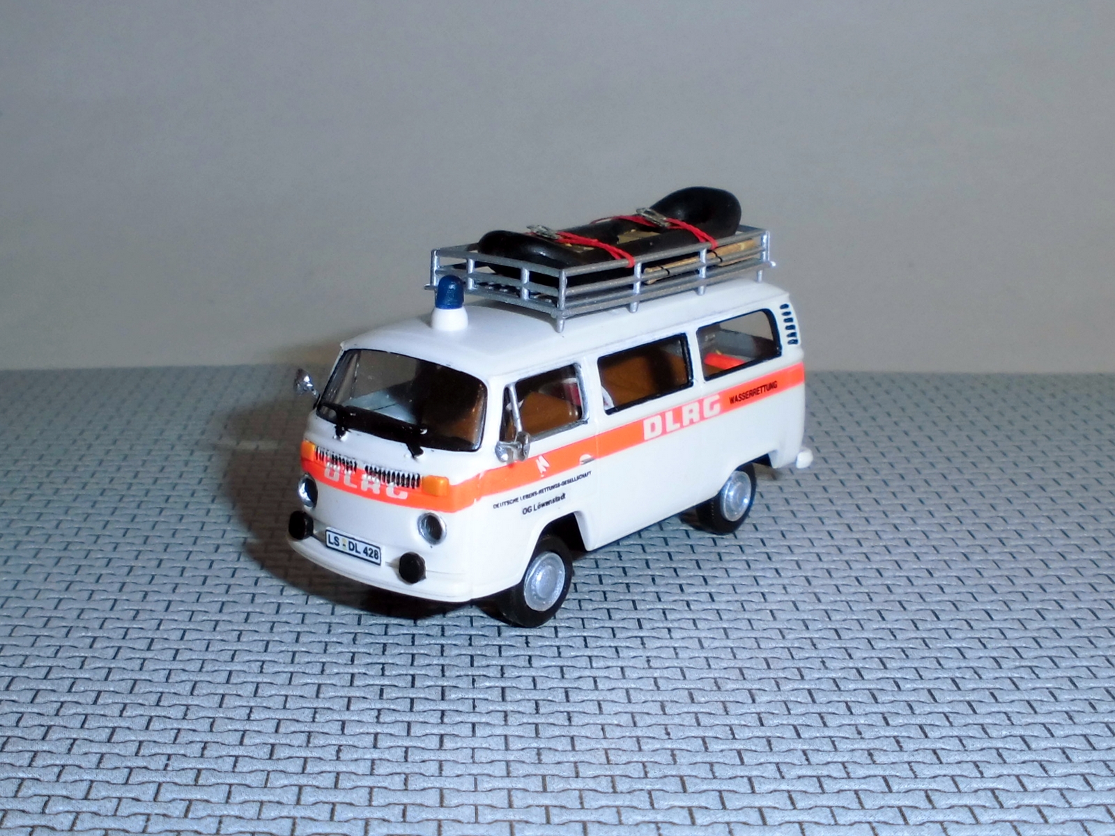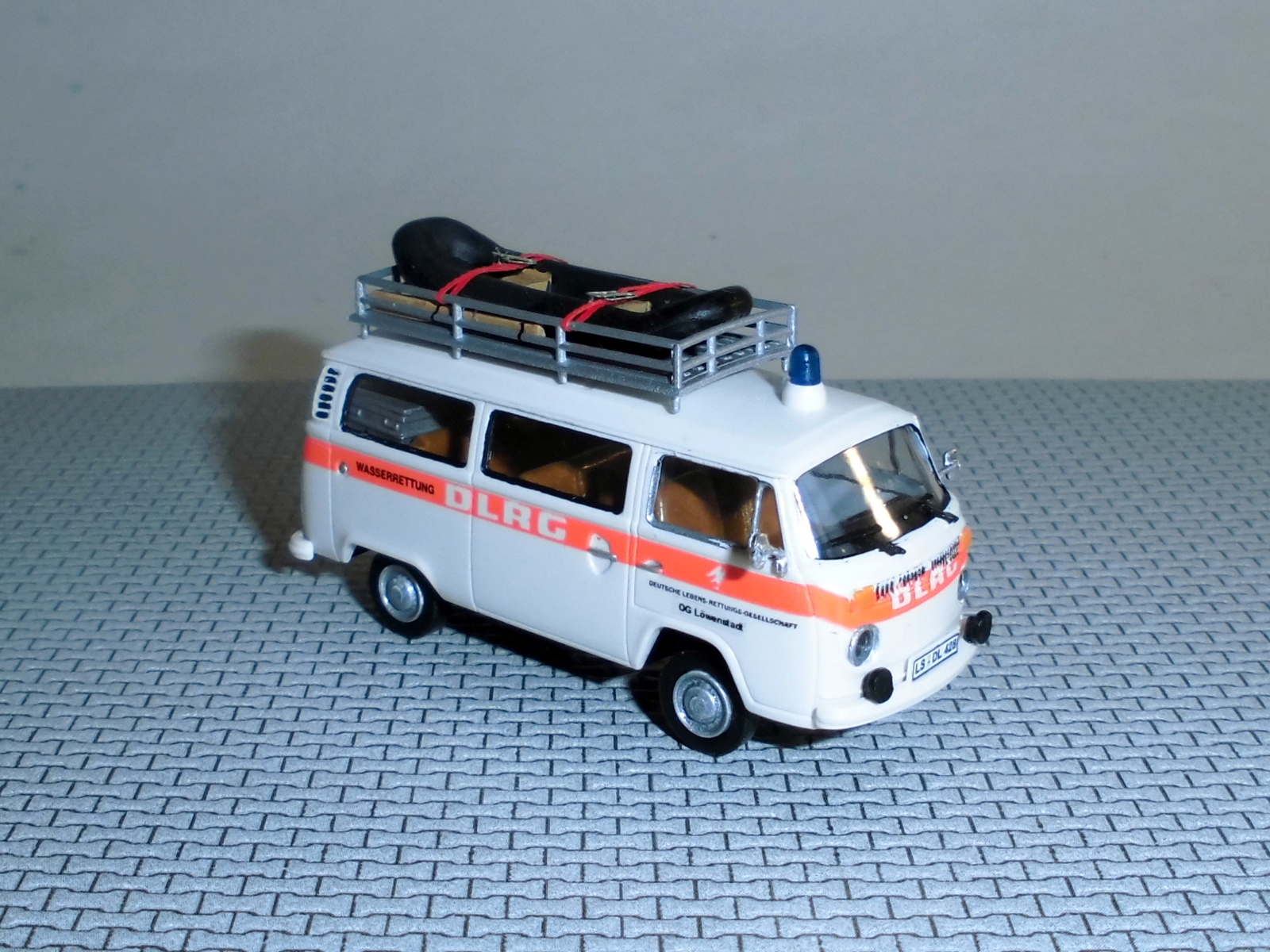 Die Basis für das Modell bildet natürlich das Roco-Modell des KrKw. In diesem Fall gab es aber keine DLRG-Variante, die ich nutzen konnte. Also wurde wieder das volle Programm gefahren: Komplettlackierung, Unmengen von Decals (meist TL, ein wenig Decalprint und MMH), ergänzendes Zubehör wie z.B. das 1,9 kW-SEA aus dem Hause MR Modellbau.