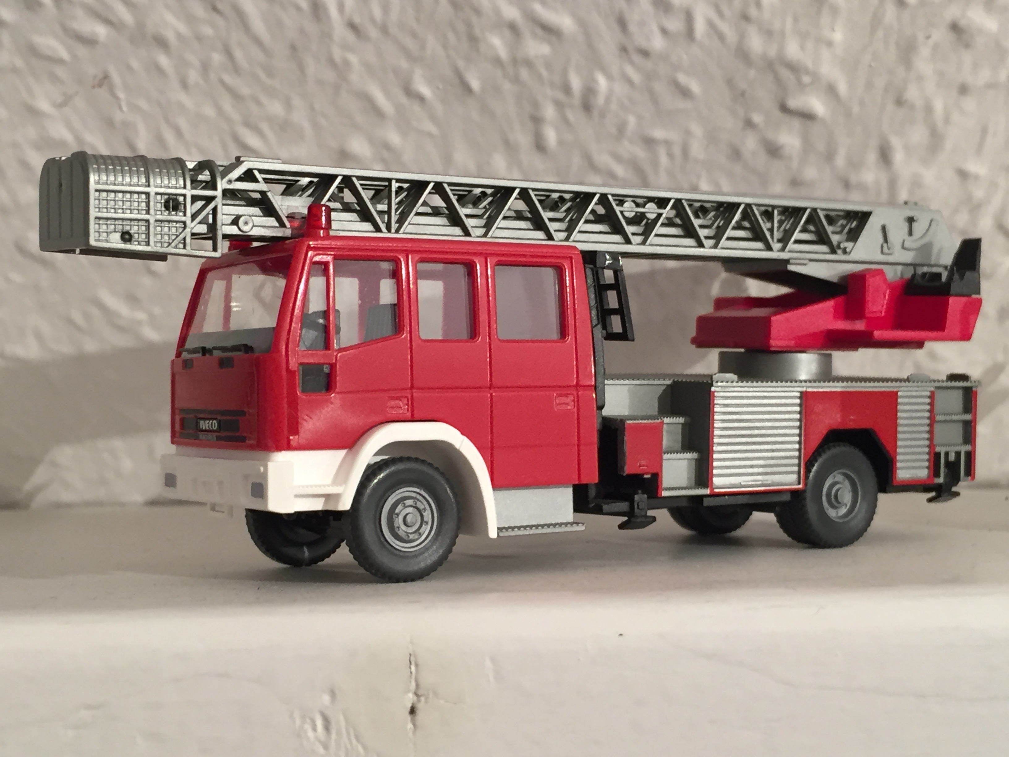 ich habe mir aus WIKING-Komponenten eher unspektakulär eine MAGIRUS DLK auf IVECO-Fahrgestell zusammen "gesteckt", die ich gerne nach einem Vorbild weiter gestalten möchte, wie es an japanische Feuerwehren geliefert wurde ...: