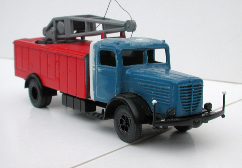 Auslöser war diesmal, daß ich bemerkt habe, daß meine Magirus-Rundhauber-Allrad-DL 22 nicht wirklich funktional war: der Leiterstuhl kollidierte, wenn man ihn um 180° drehte, mit der Kabine. Das haben sie beim fiktiven Vorbild natürlich früher gemerkt als ich, aber auch dort stand das bei Magirus bestellte Allradchassis mit kurzem TLF-Radstand und Staffelkabine schon in der Werkstatt, um die Drehleiter der einzigen kriegsüberlebenden, dann aber 1949 auf nassem Blaubasalt tragisch verunfallten Allenstedter SDL aufgesetzt zu bekommen.