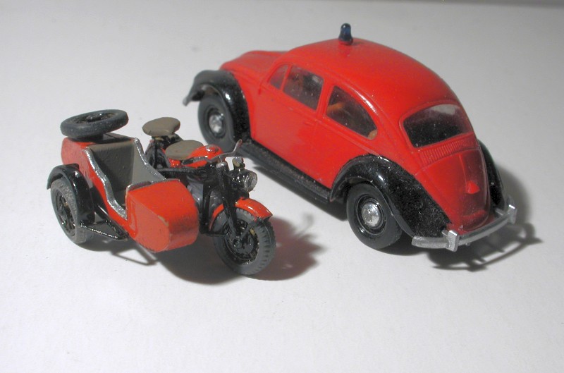 Der Käfer ist übrigens ein angefangener, kompromißbehafteter Brekina-Umbau. Soll mal ein '57er werden, für einen Kumpel. Der steht nur da, weil er so schön zu den Rundhaubern paßt.