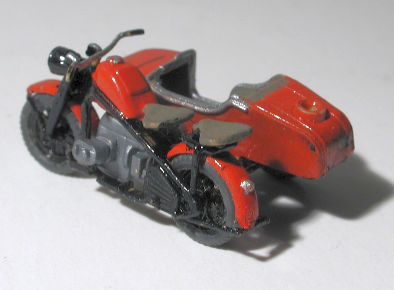 Der originale Preiser-Reifen auf dem Reserverad. Ob dieses tatsächlich auf den Seitenwagen kommt oder andere Ausrüstung, habe ich mich noch nicht entschieden. Definitiv kommt aber noch ein großer blauer Scheinwerfer vorn auf den Seitenwagen und eine Sirene auf das vordere Schutzblech. Auch das rote Schlußlichtglas fehlt noch.
