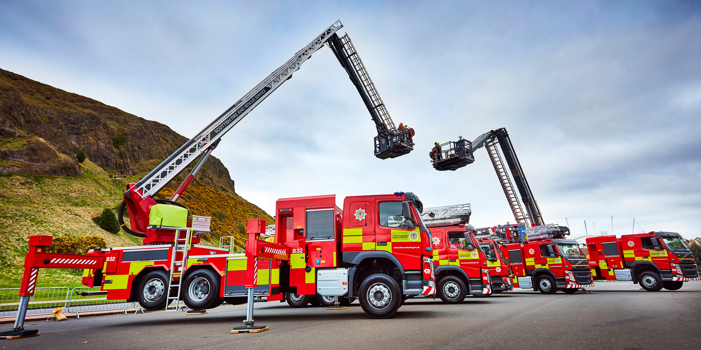 In einem mehrjährigen Beschaffungsprogramm verstärkt das Scottish Fire and Rescue Service seinen Fuhrpark um eine ganze Flotte von Hubrettungsgeräten. Bis 2019 stellt sie knapp ein Dutzend neuer Fahrzeuge in Dienst, zehn Hubrettungsbühnen und eine Drehleiter. Sie steigert damit nicht nur ihre Einsatzkapazitäten, sondern schraubt auch den Stand ihrer Einsatztechnik auf ein neues Niveau. Und sie vertraut dabei ganz auf Feuerwehrtechnik aus dem Hause Rosenbauer, dem weltweit führenden Hersteller von Hubrettungsgeräten.