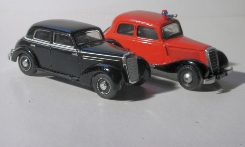 Der KdoW ist ein Busch/Praliné Mercedes 170 V, als solcher natürlich nicht frei von kleinen Proportionsmängeln, aber so in rot/schwarz/chrom wird ja alles einigermaßen ansehnlich.