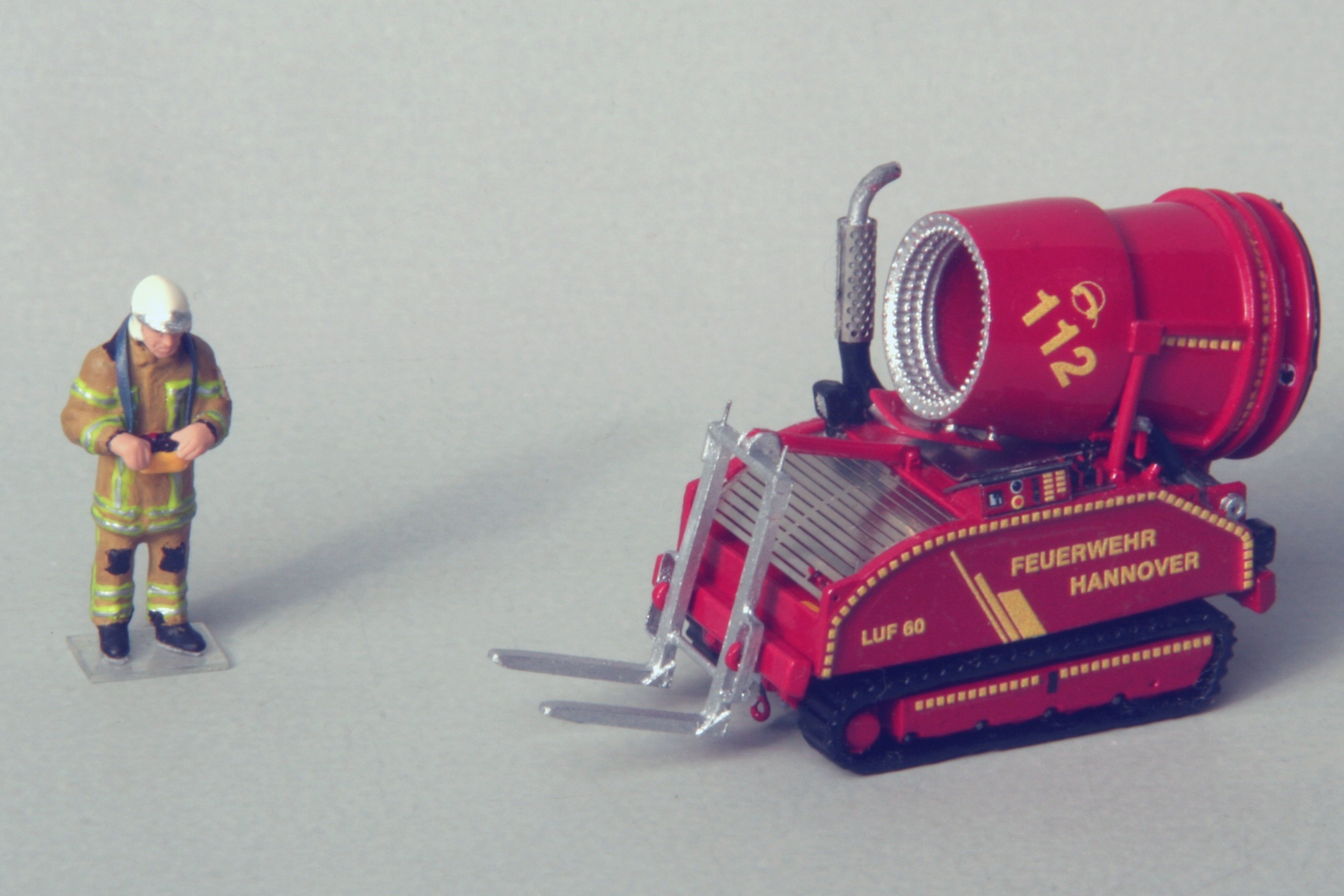 Und damit das LUF nicht so ganz von alleine funktionieren muss, ist bei der Aktion auch noch ein Bediener in der aktuellen Schutzkleidung der BF Hannover herausgesprungen. Die Fernbedienung hat er sich umgehängt.