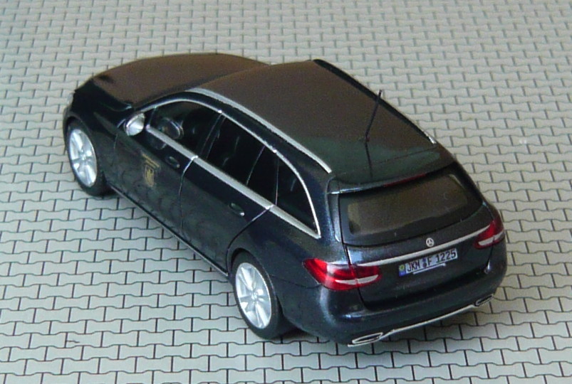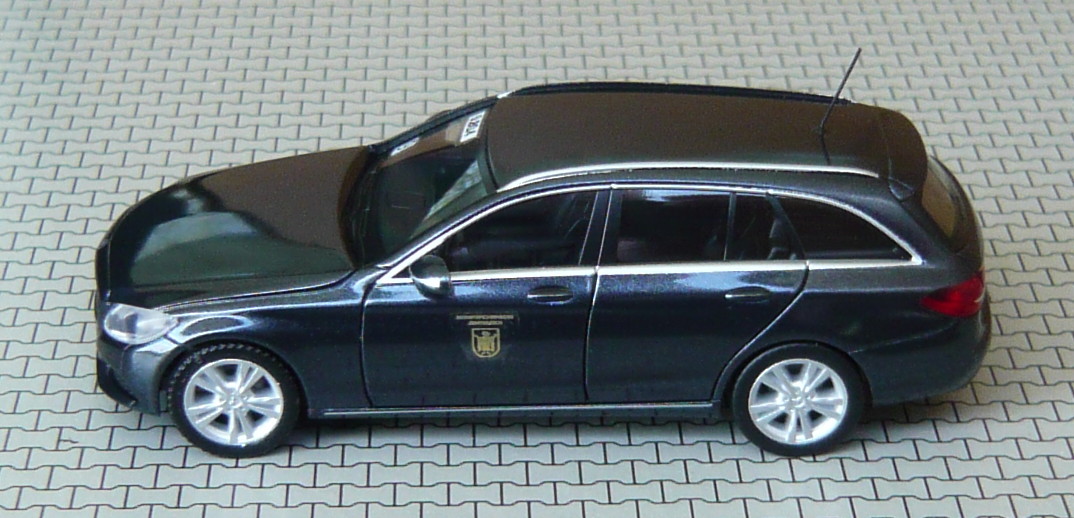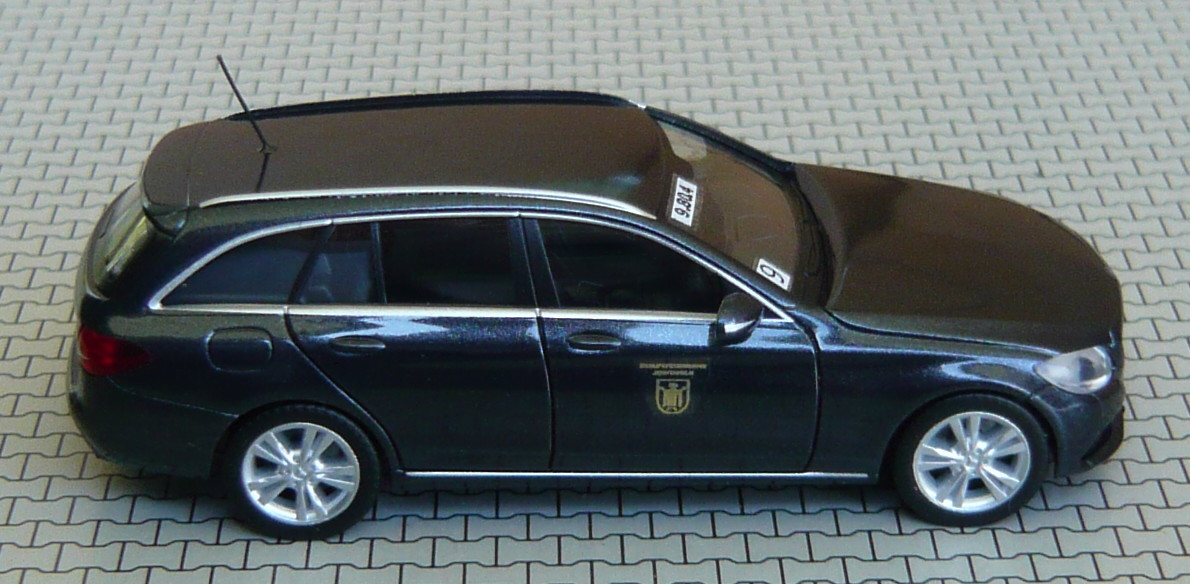 Auch hier war es zum einen nicht vonnöten und mir persönlich zu riskant, das erstklassig lackierte und bedruckte Modell zu zerlegen. Daher wurde die C-Klasse lediglich mit Decals (Kennzeichen, Türwappen, Wachnummer und Funkkennung) von DS-Design und einer Antenne von Preiser versehen.