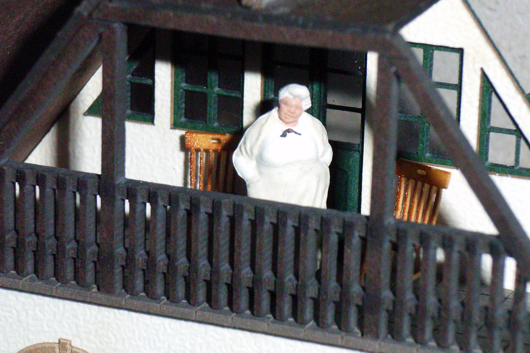 Um den Haushalt des Herrn Branddirektors und das leibliche Wohlergehen seiner fünfköpfigen Familie kümmert sich die Stütze der Hausfrau - nennen wir sie der Einfachheit halber Berta. :D Die treue Seele bewohnt die kleine Dachmansarde und erholt sich in ihrer knappen Freizeit auf dem zum Hof gelegenen Balkon.