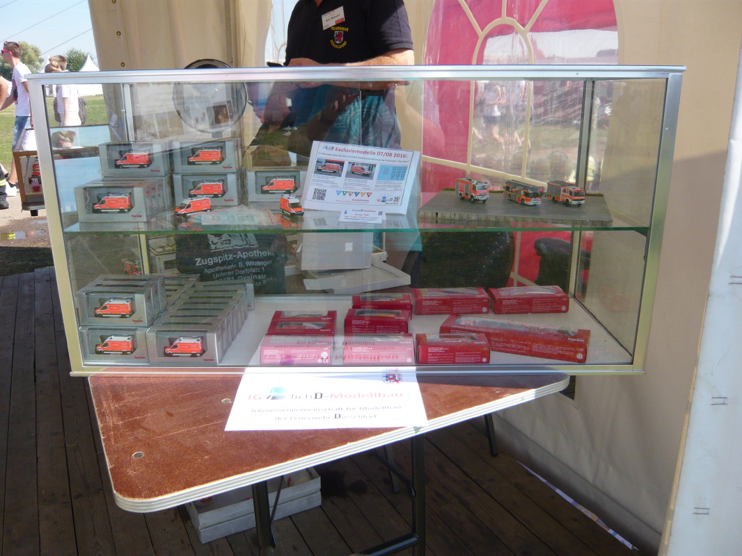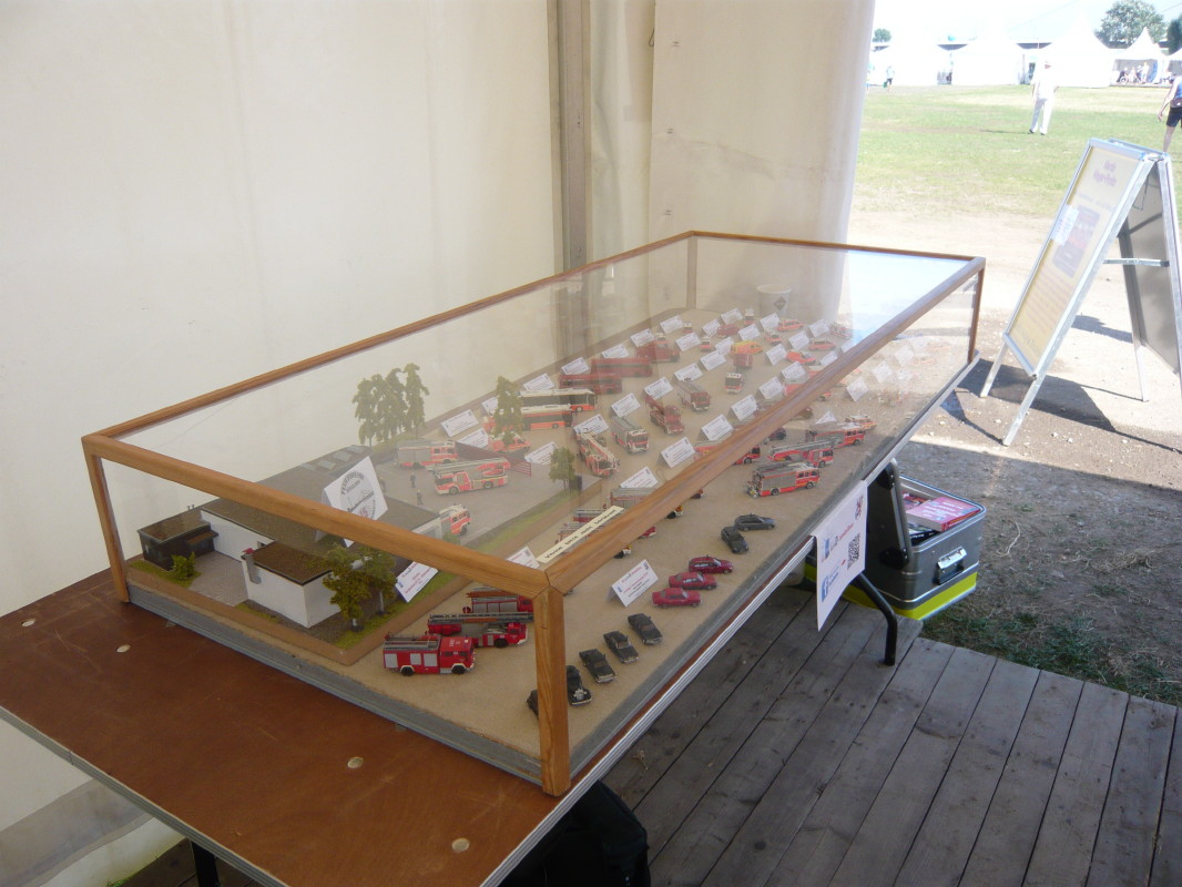 Einige unserer Vitrinen nahmen bei der großen Feier "70 Jahre NRW" am NRW-Tag auf den Rheinwiesen in Düsseldorf teil - sie dienten hier der Präsentation und dem Schutz der Modelle der Modellbaukollegen von der IG BlaulichD-Modellbau.